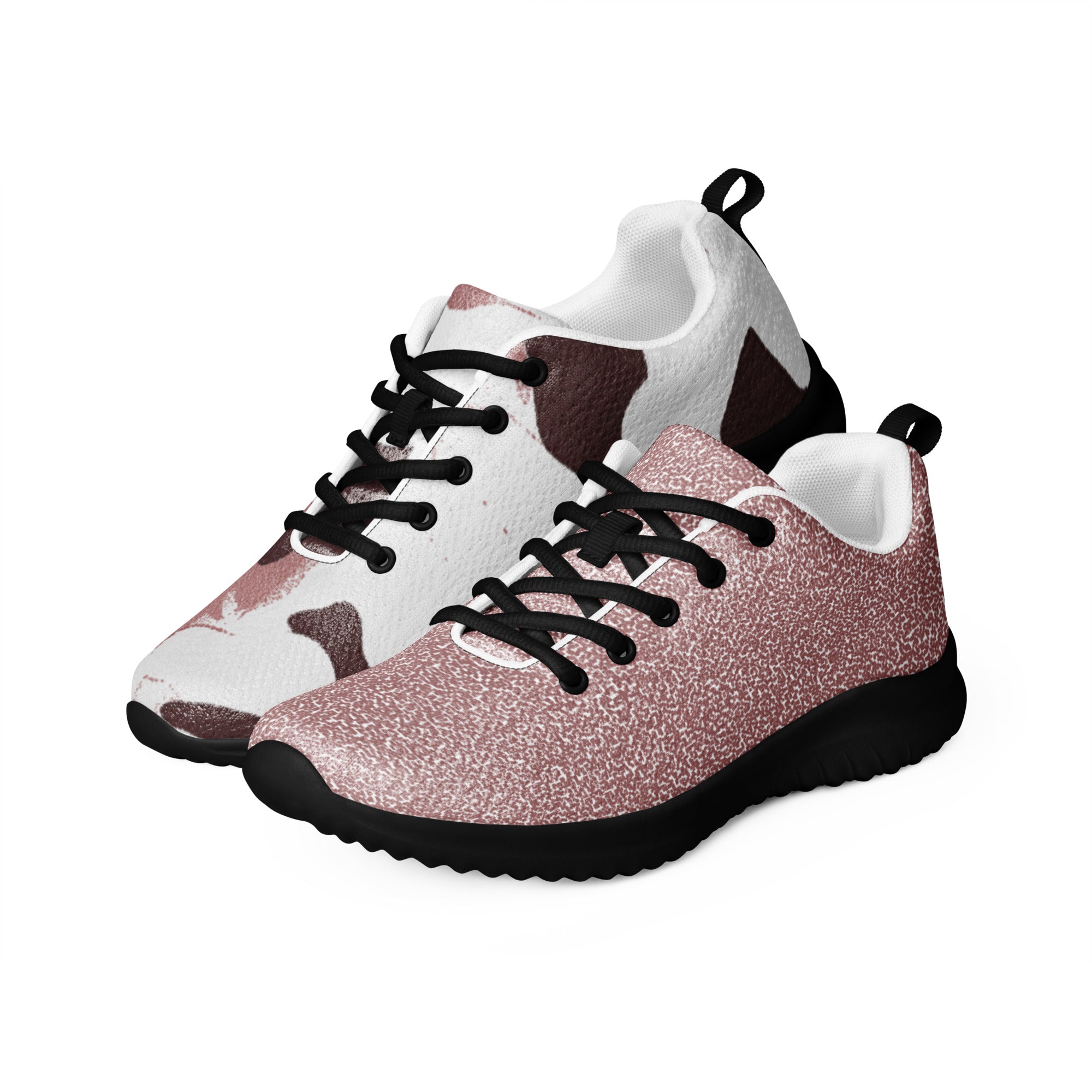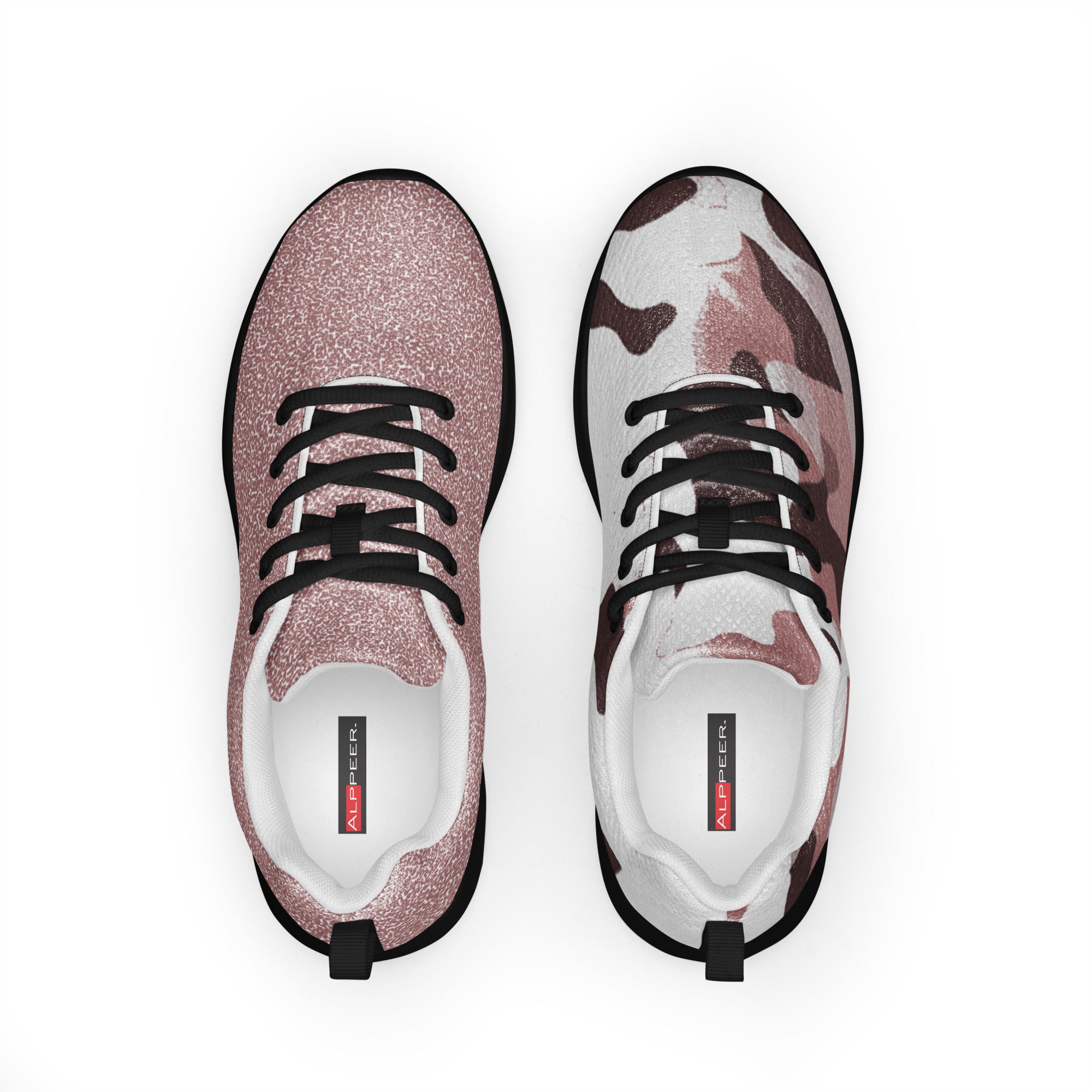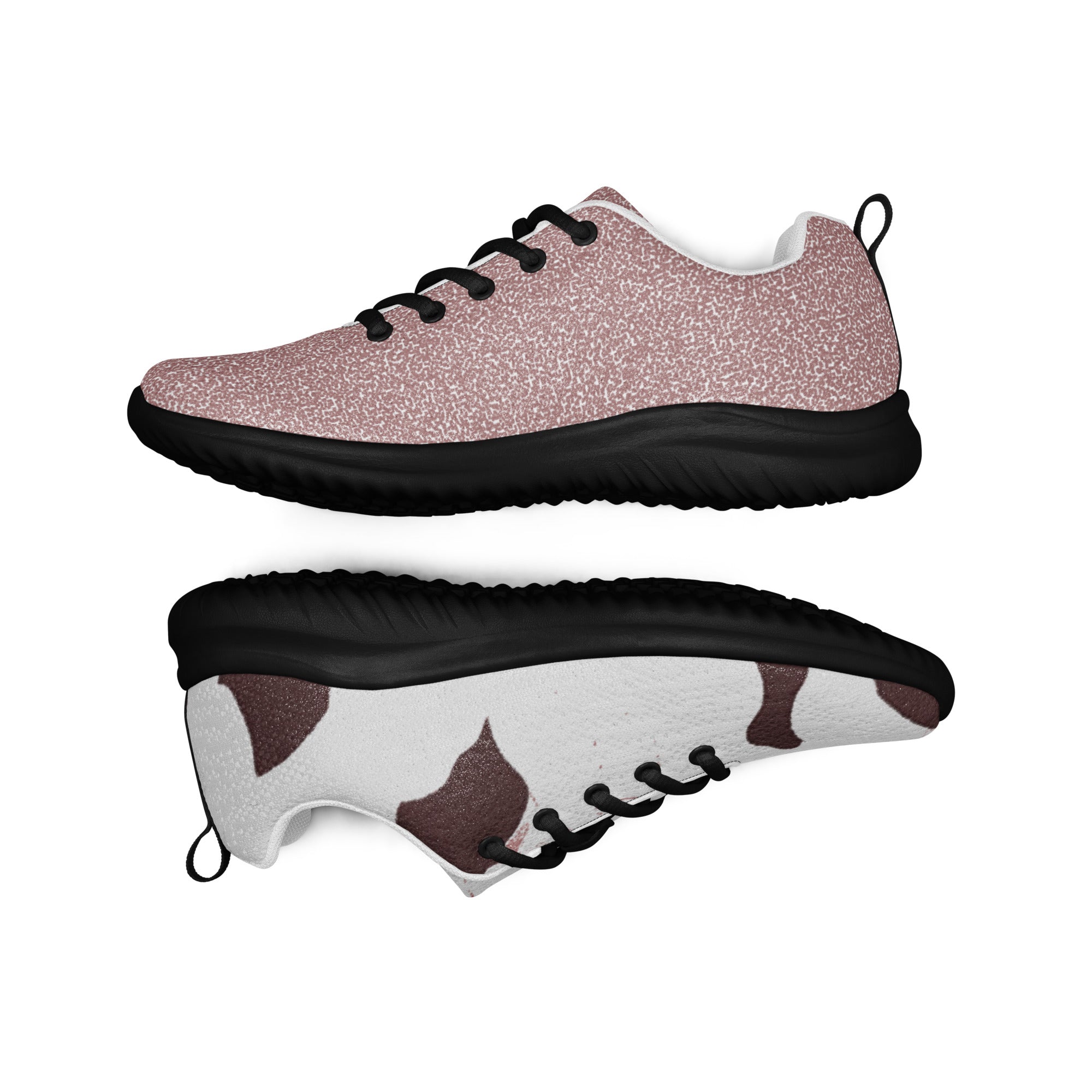 Introducing the Alppeer Rosewood Athletic Shoes—where sophisticated style meets athletic performance. These aren't just sneakers; they're a statement of refined taste with their stunning rose gold textured design and artistic cow print accents that create a look that's both elegant and edgy.