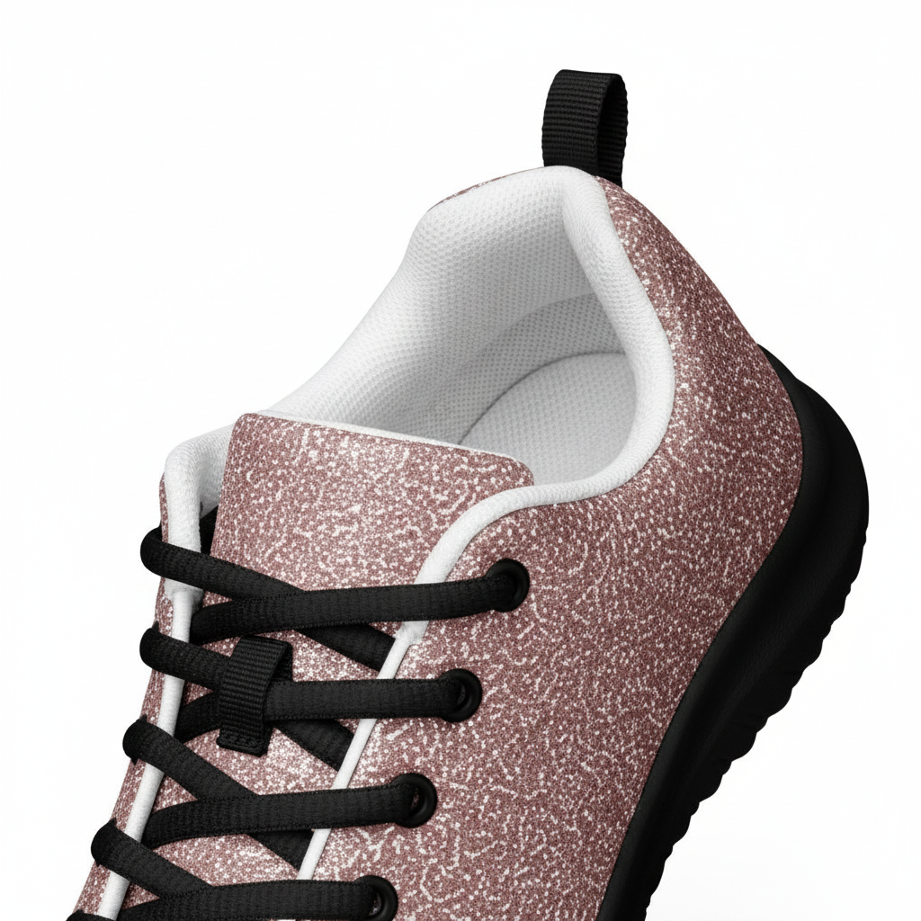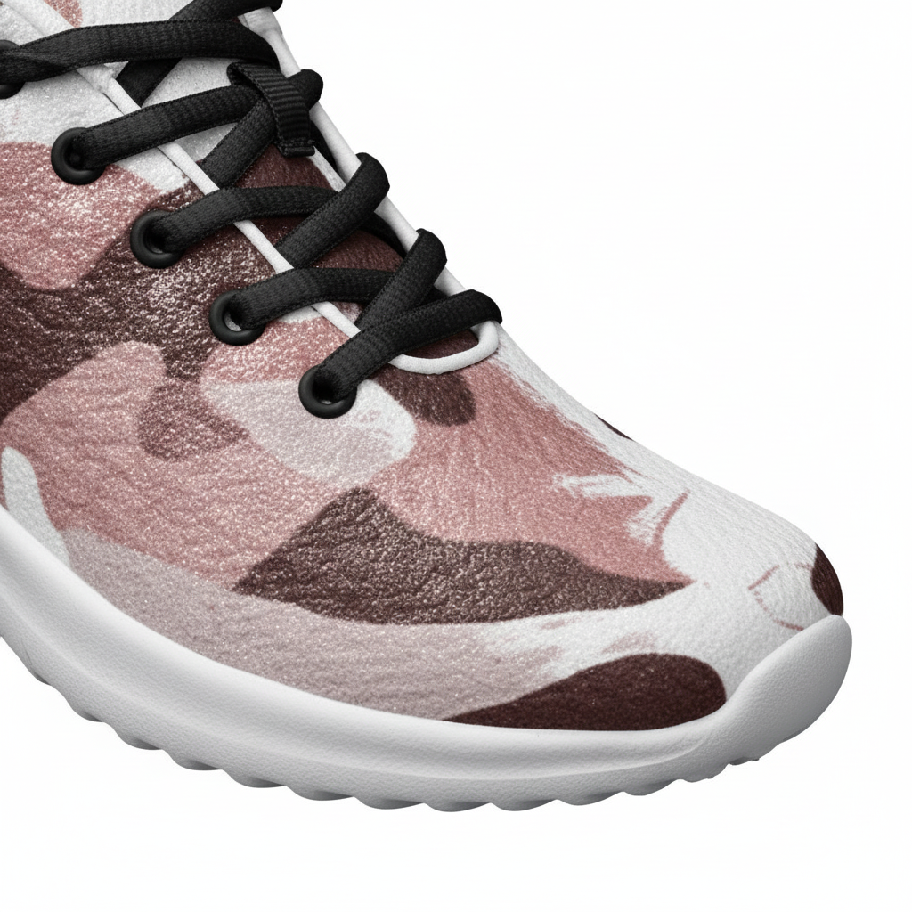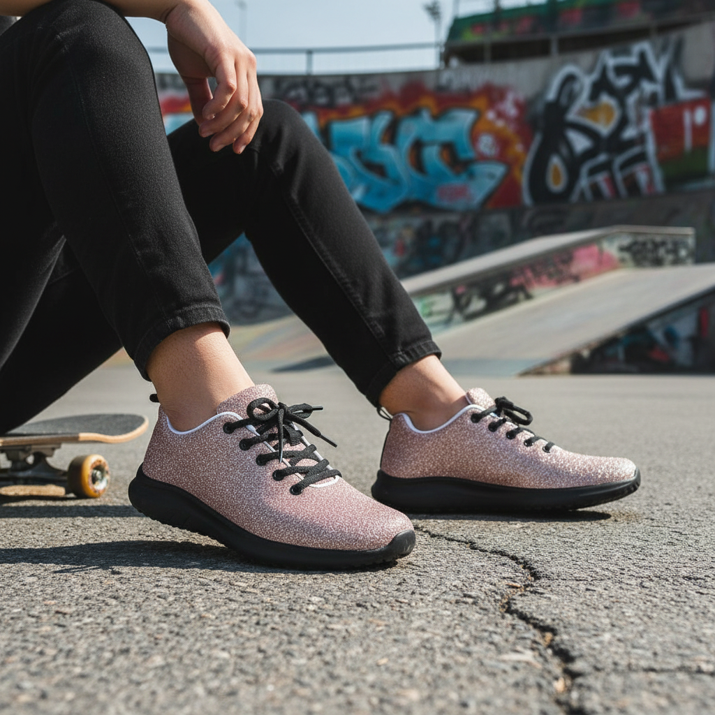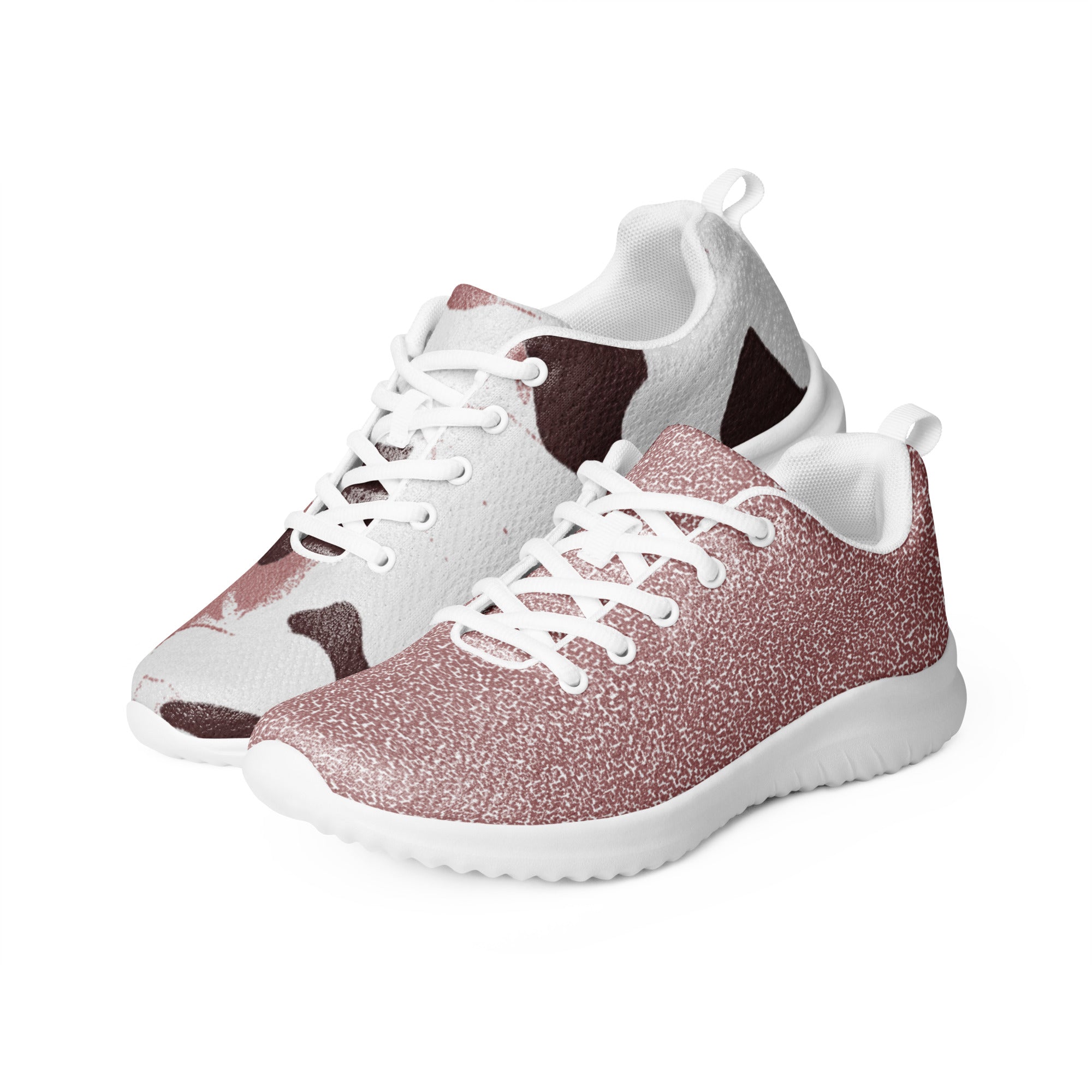 Introducing the Alppeer Rosewood Athletic Shoes—where sophisticated style meets athletic performance. These aren't just sneakers; they're a statement of refined taste with their stunning rose gold textured design and artistic cow print accents that create a look that's both elegant and edgy.