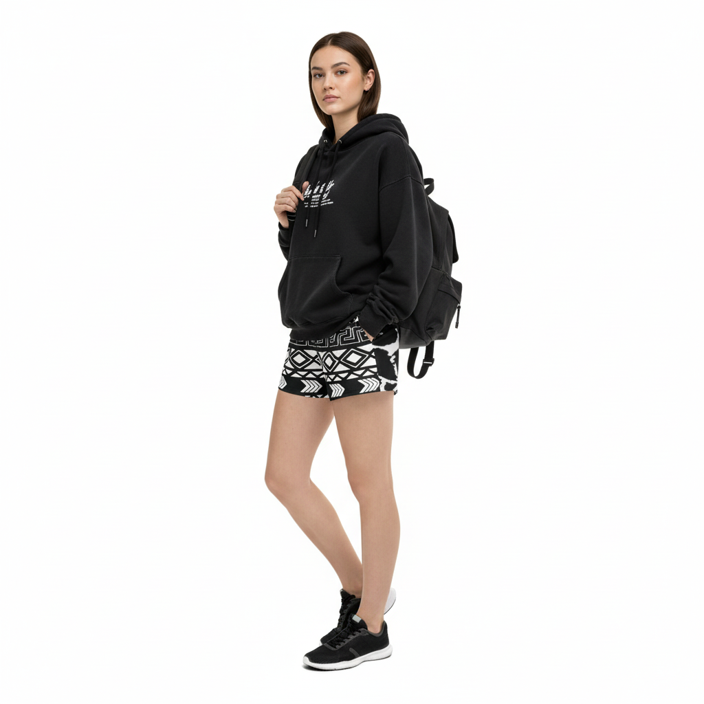 Complete with an oversized black hoodie or graphic t-shirt and casual sneakers for a relaxed, confident urban streetwear look. Perfect for errands, casual outings, or weekend adventures.