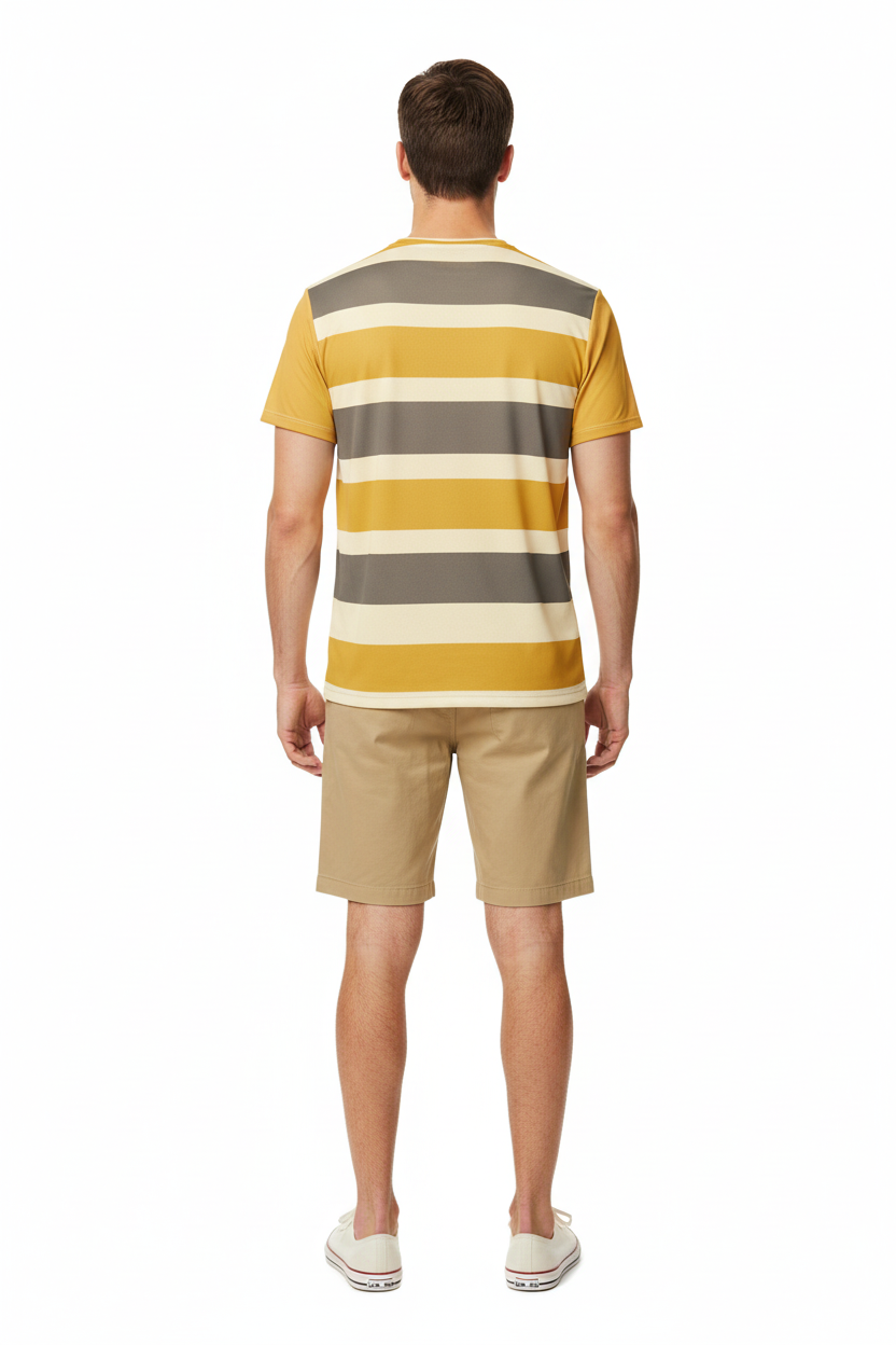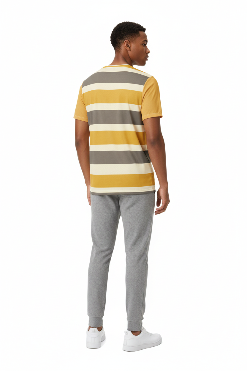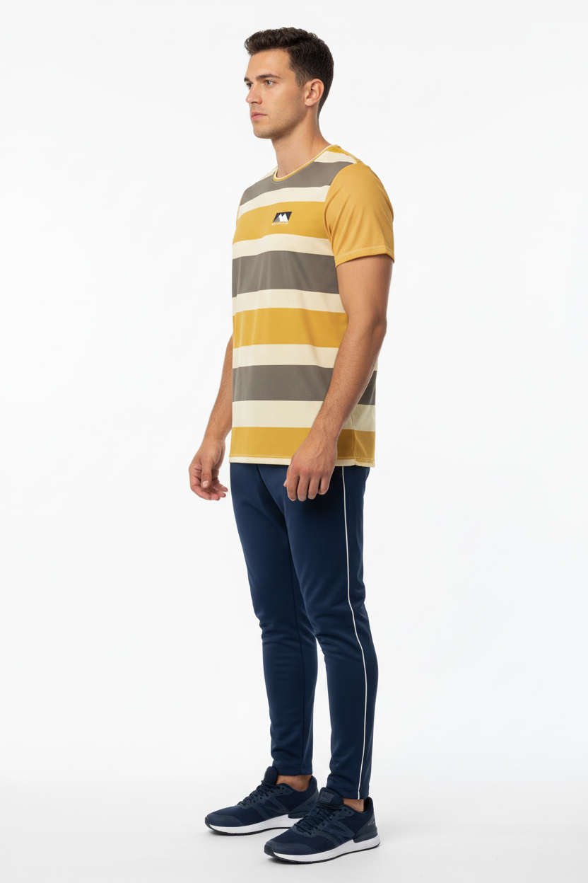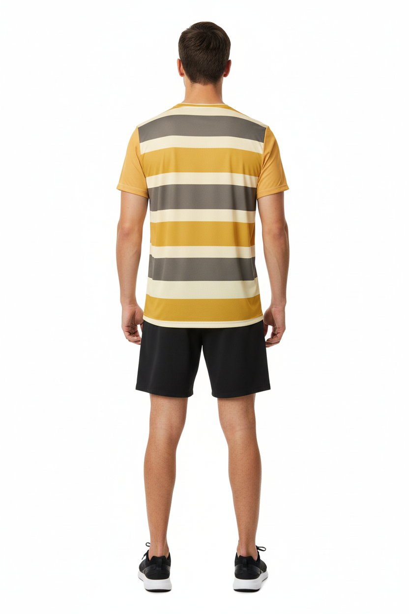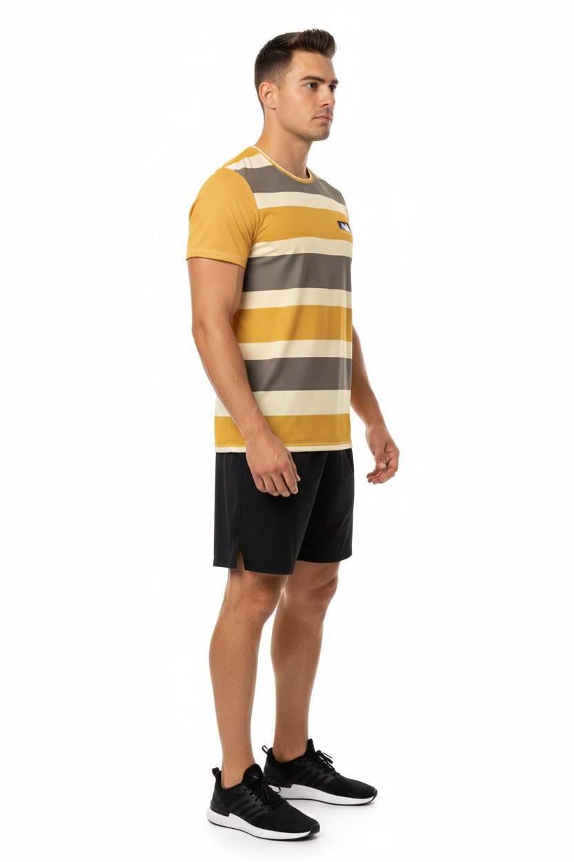 Golden Horizon Athletic Tee - Striped Performance Shirt