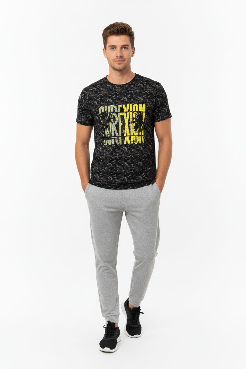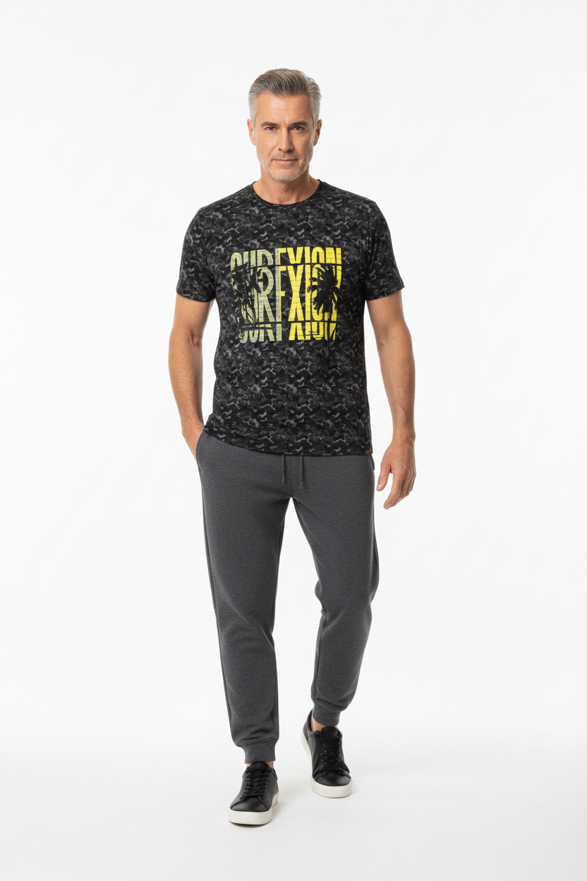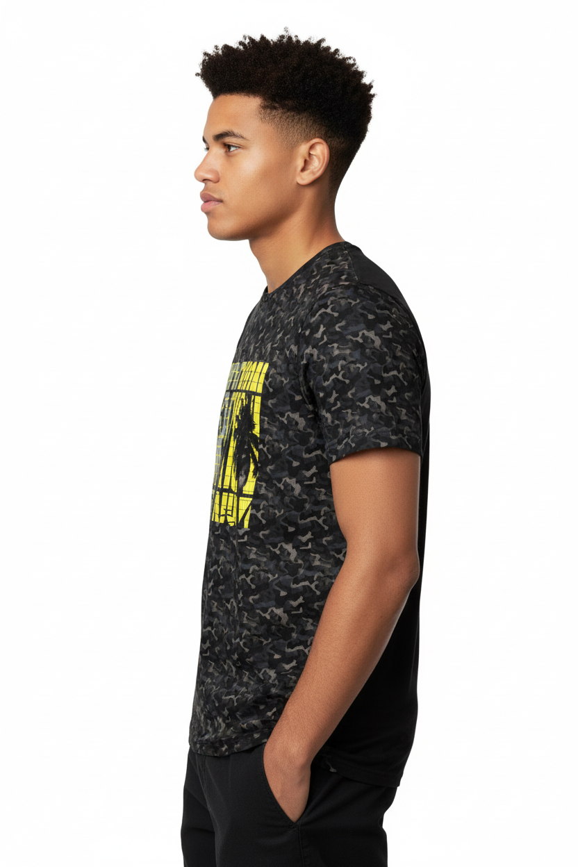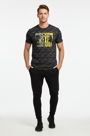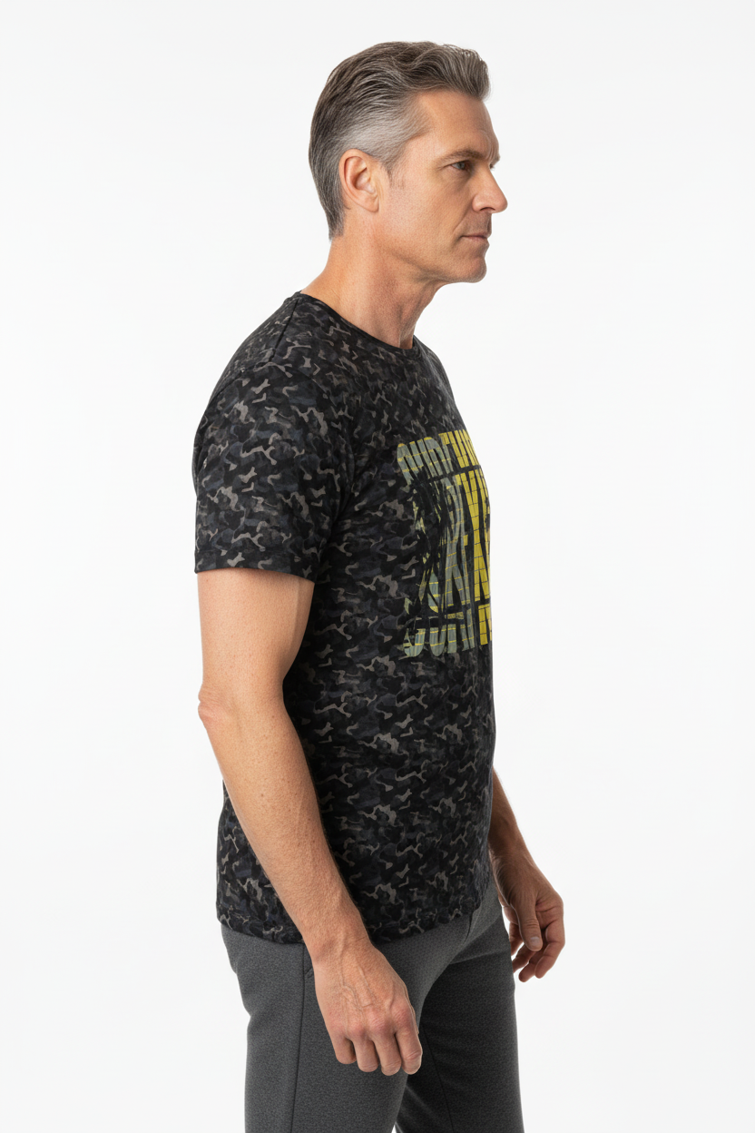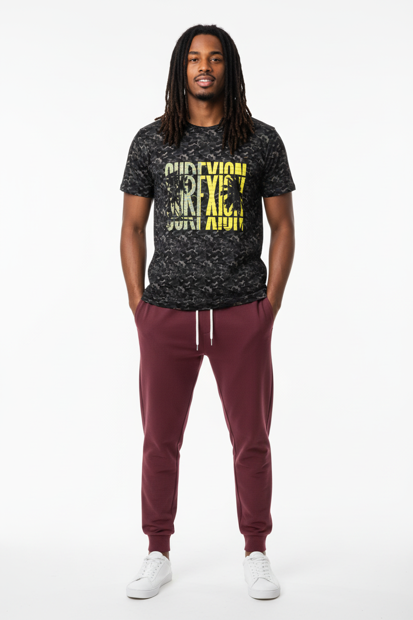 Where surf culture intersects with tactical design, the Surfxion Camo Athletic Tee showcases a bold black camouflage pattern accented by vibrant yellow "SURFXION" graphics, tailored for those who challenge boundaries both on and off the water.
