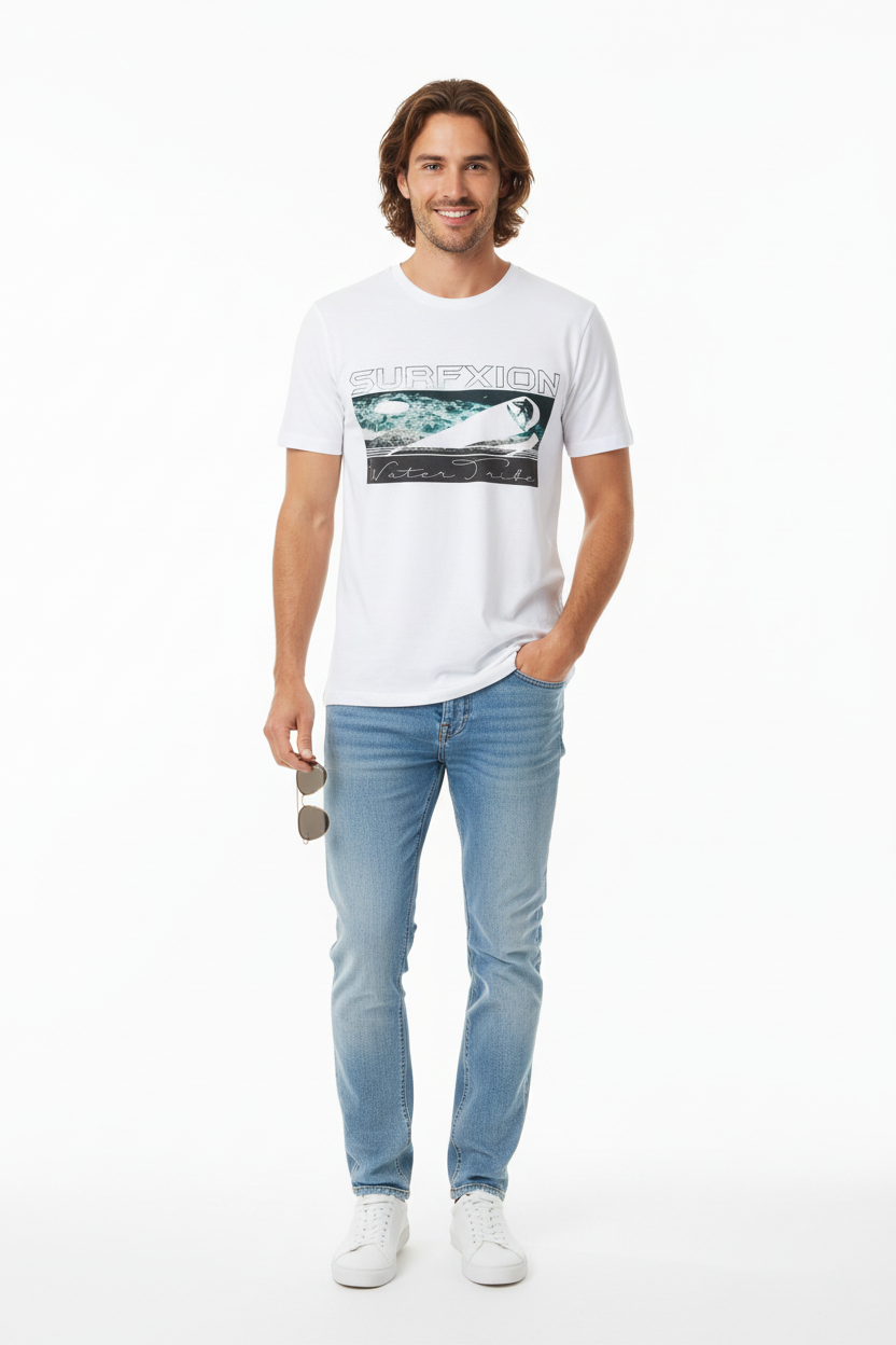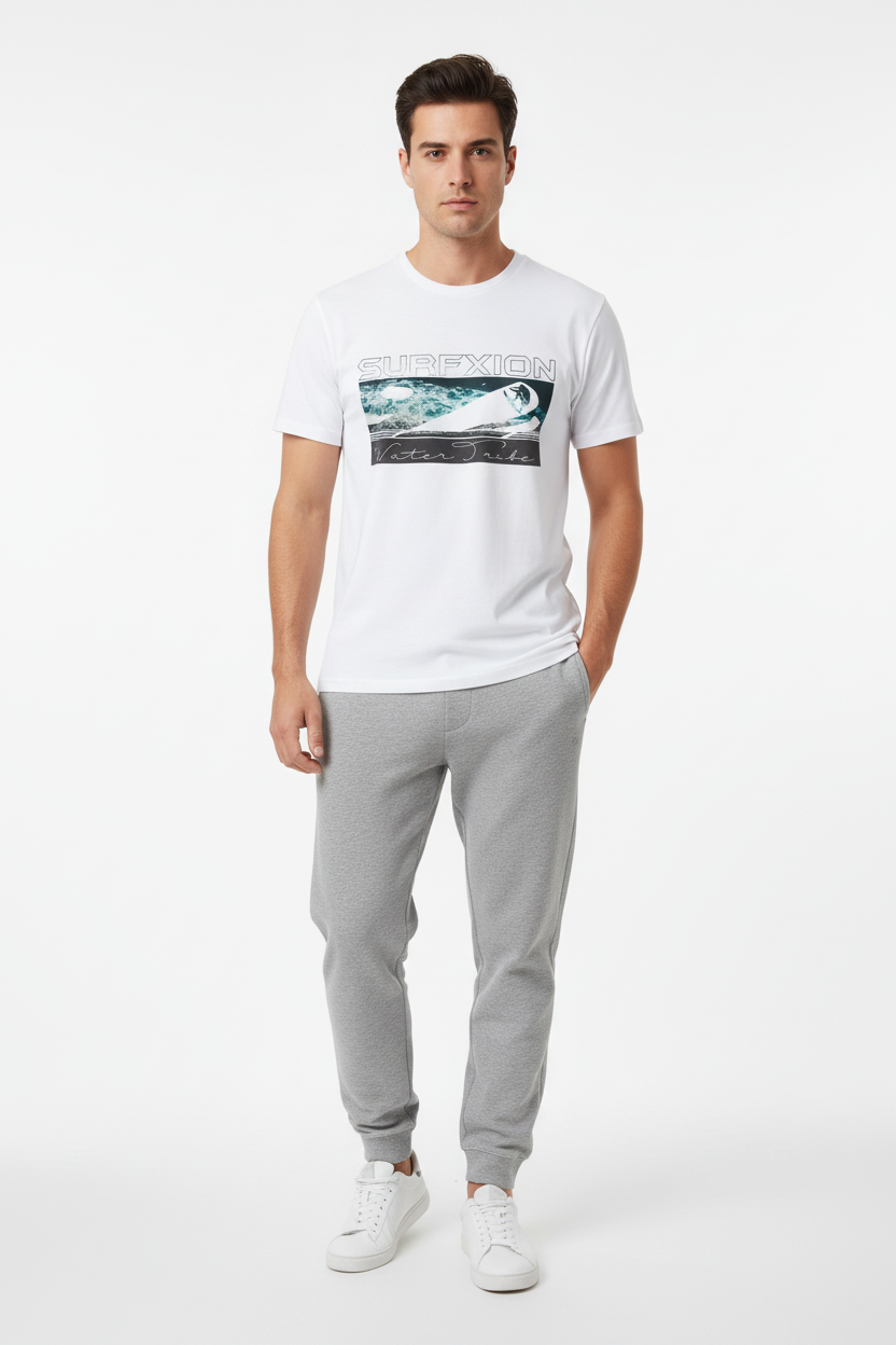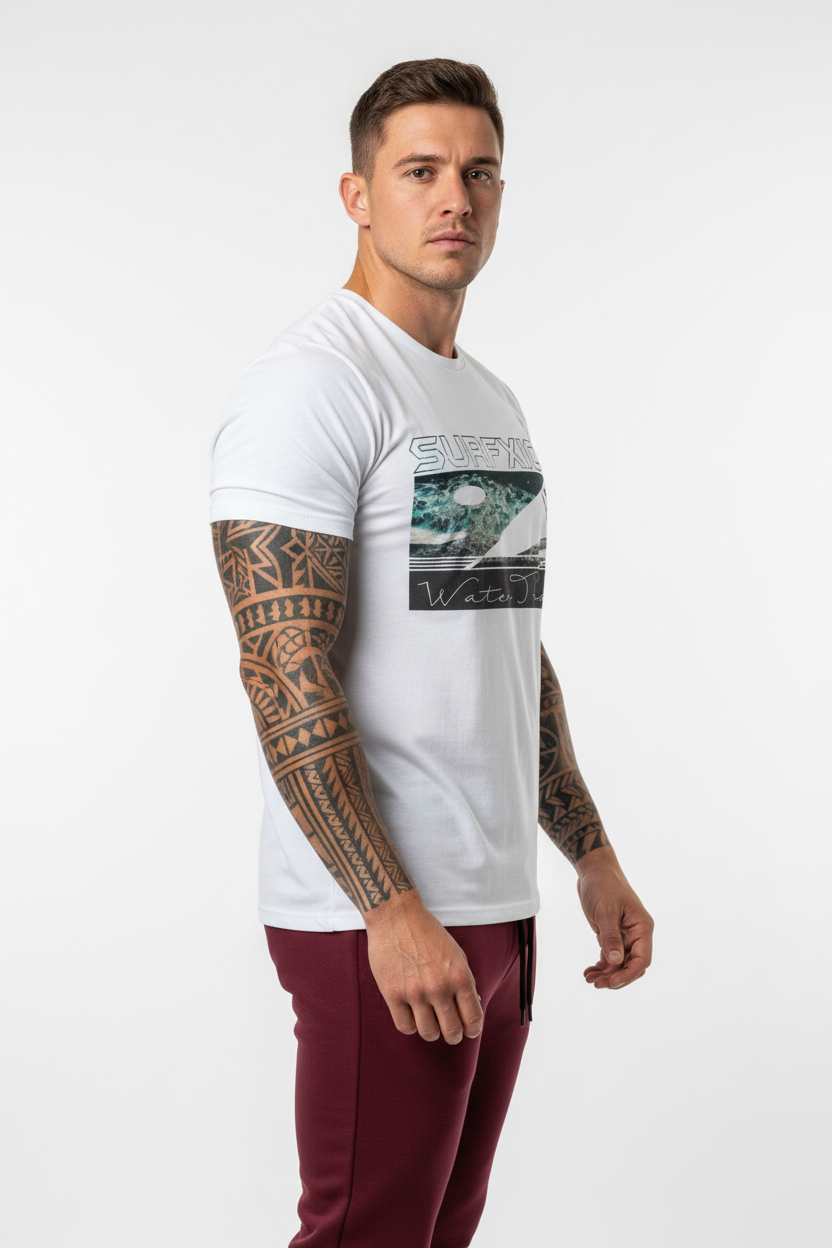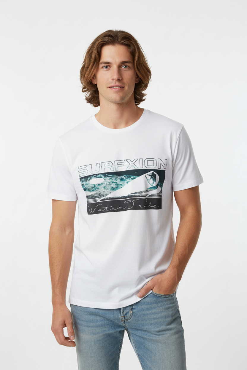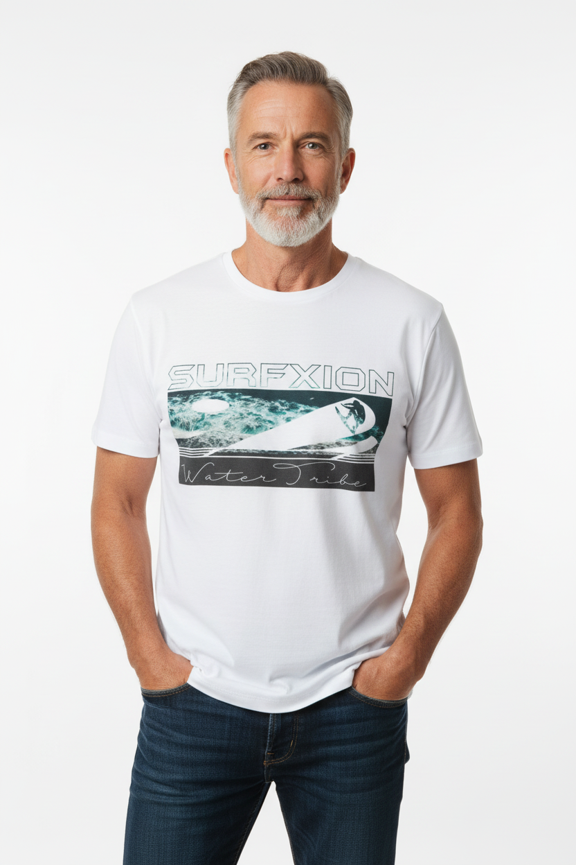 Description: Join the Water Tribe with the Surfxion Athletic Tee. Featuring the iconic ocean wave graphic with surfer silhouette and Water Tribe script on a clean white base, this performance t-shirt embodies the spirit of surf culture and coastal living.