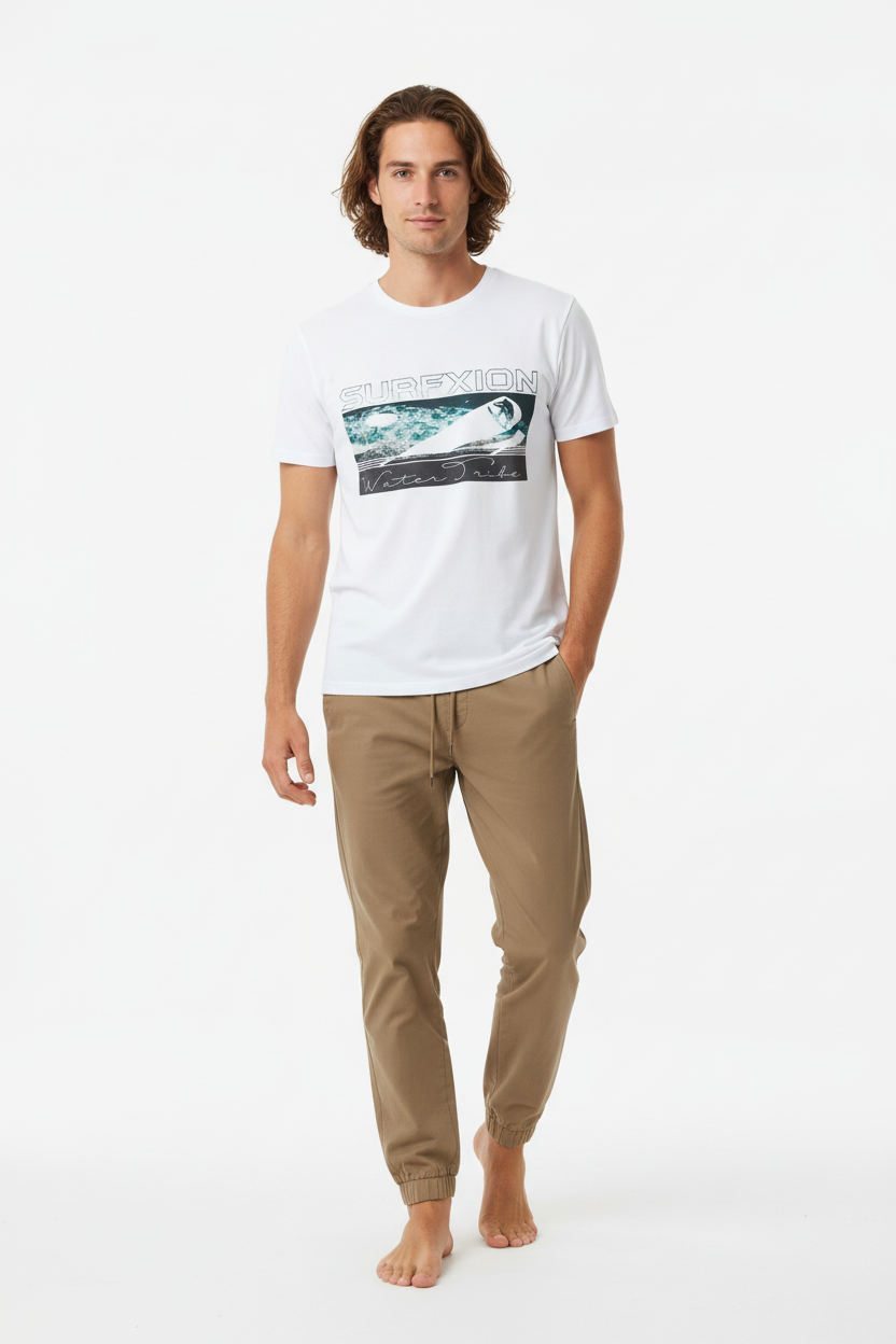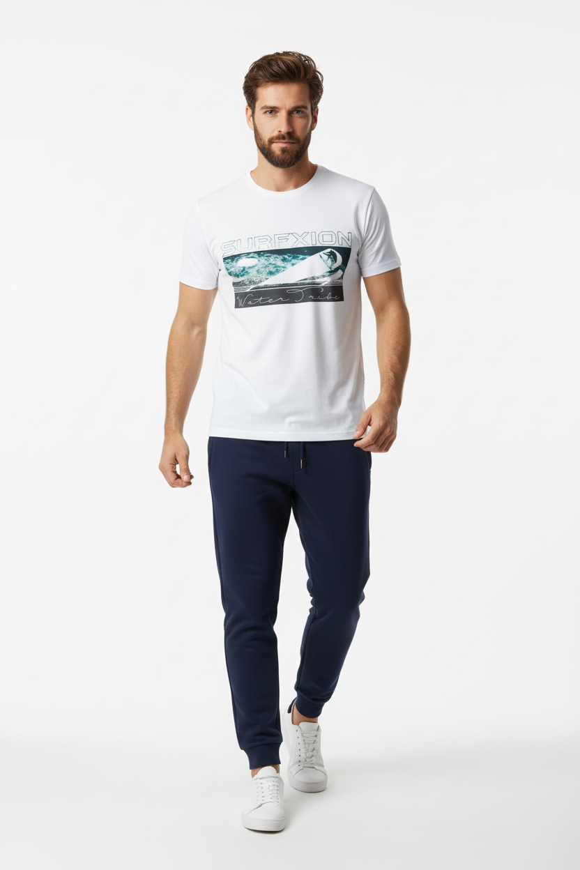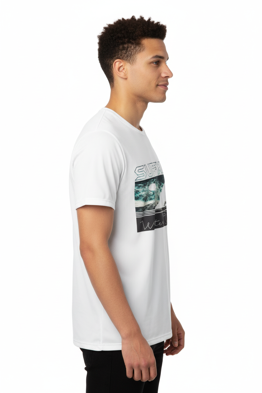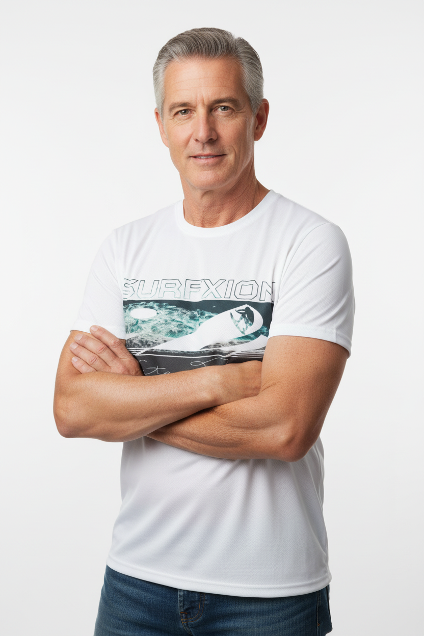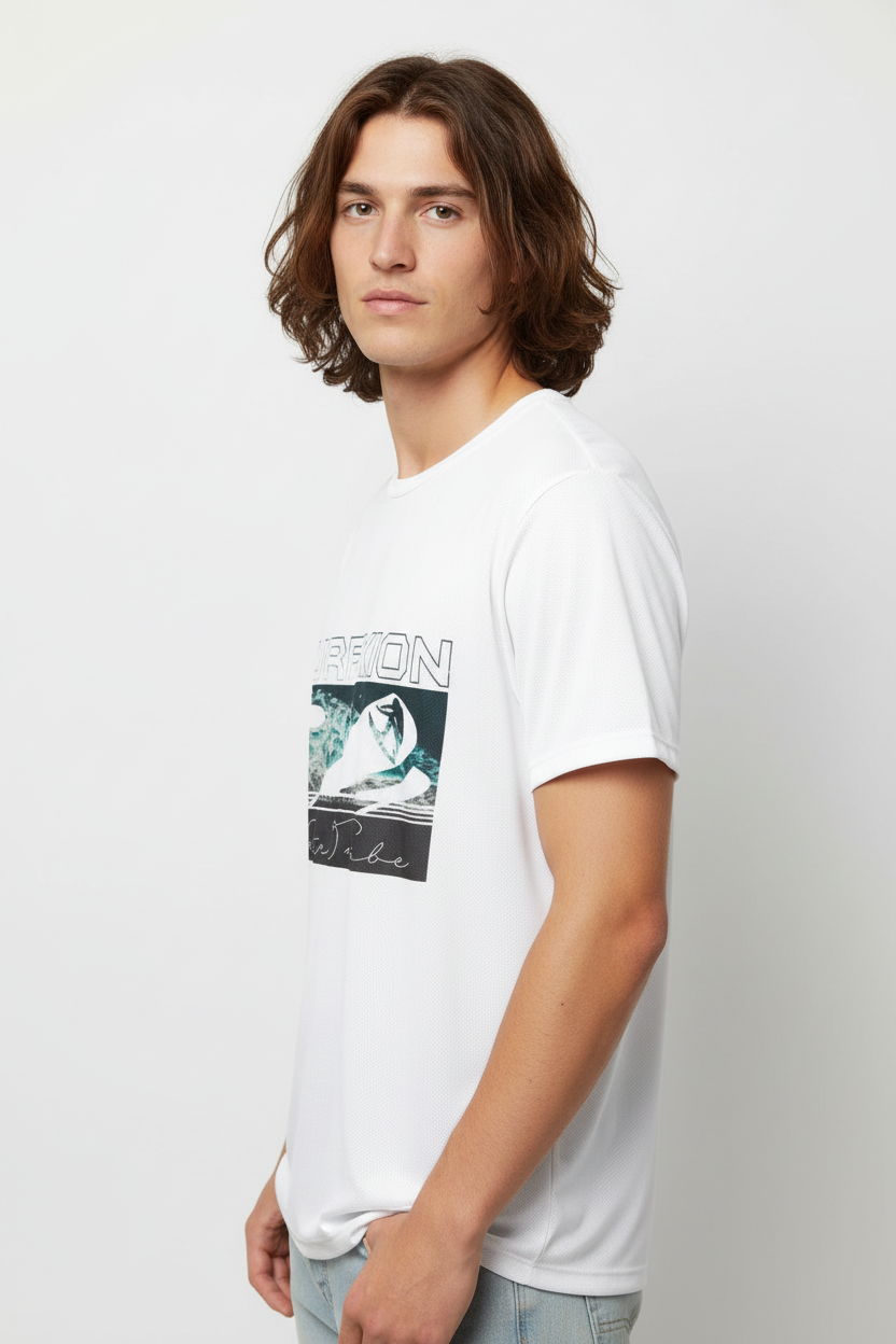 Description: Join the Water Tribe with the Surfxion Athletic Tee. Featuring the iconic ocean wave graphic with surfer silhouette and Water Tribe script on a clean white base, this performance t-shirt embodies the spirit of surf culture and coastal living.