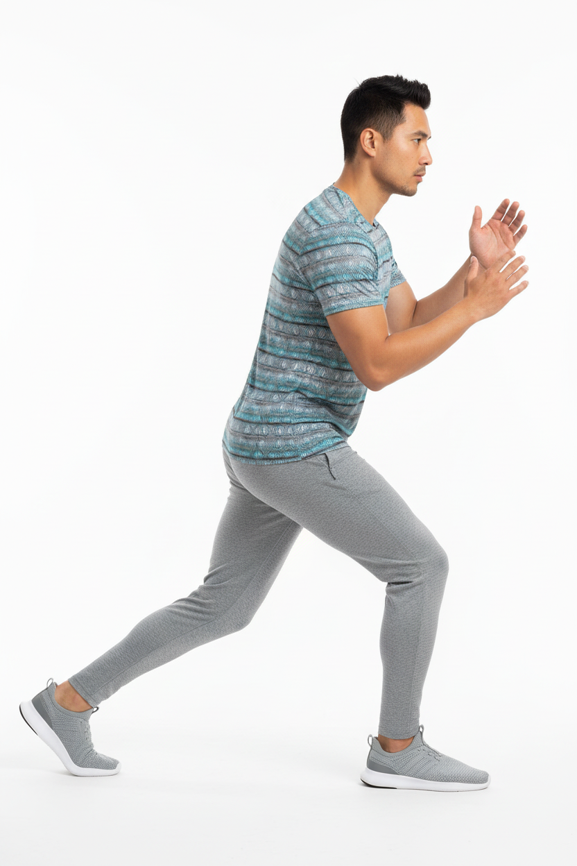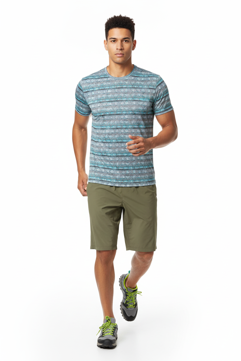 This athletic tee combines eye-catching geometric aesthetics with serious performance features. The soft, breathable sports mesh fabric wicks away moisture to keep you cool and dry whether you're hitting the gym, running trails, or training outdoors. The four-way stretch ensures complete freedom of movement, while UPF 50+ protection makes it perfect for outdoor workouts and adventures. The unique diamond wave pattern adds visual interest that transitions seamlessly from workout to casual wear.