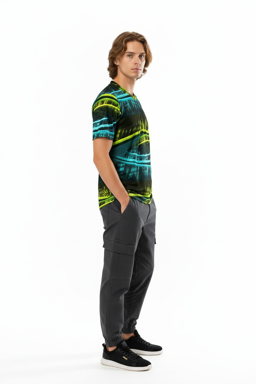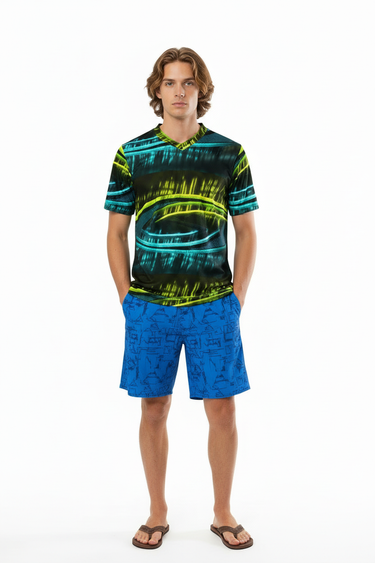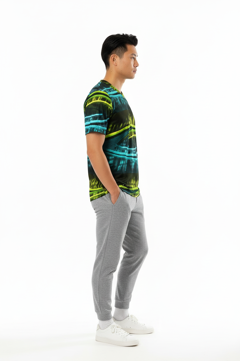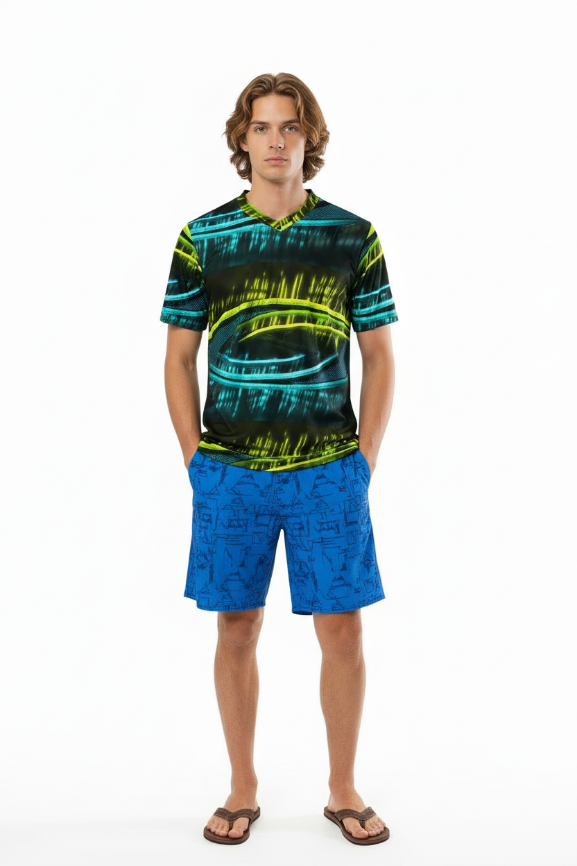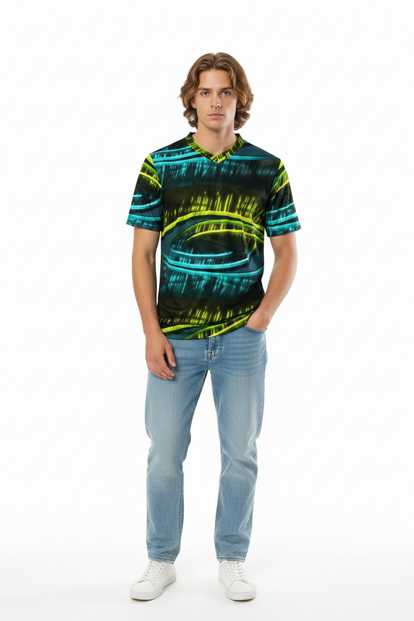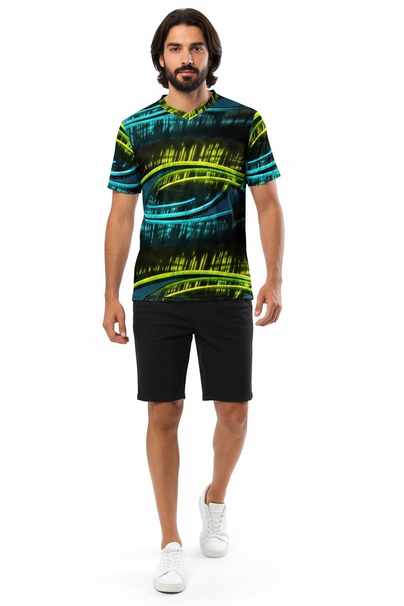Make a statement on the field, at the gym, or on the streets with the Surfxion Recycled Sports Jersey. This premium performance piece features an electrifying geometric wave pattern in vibrant yellow and cyan that captures the energy of surf culture and modern streetwear.