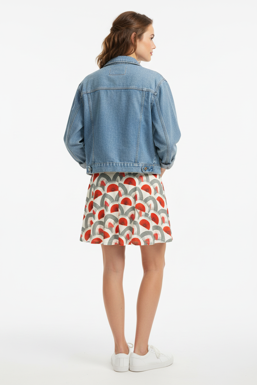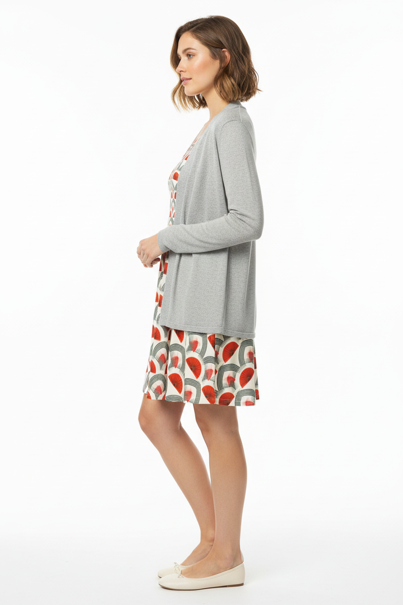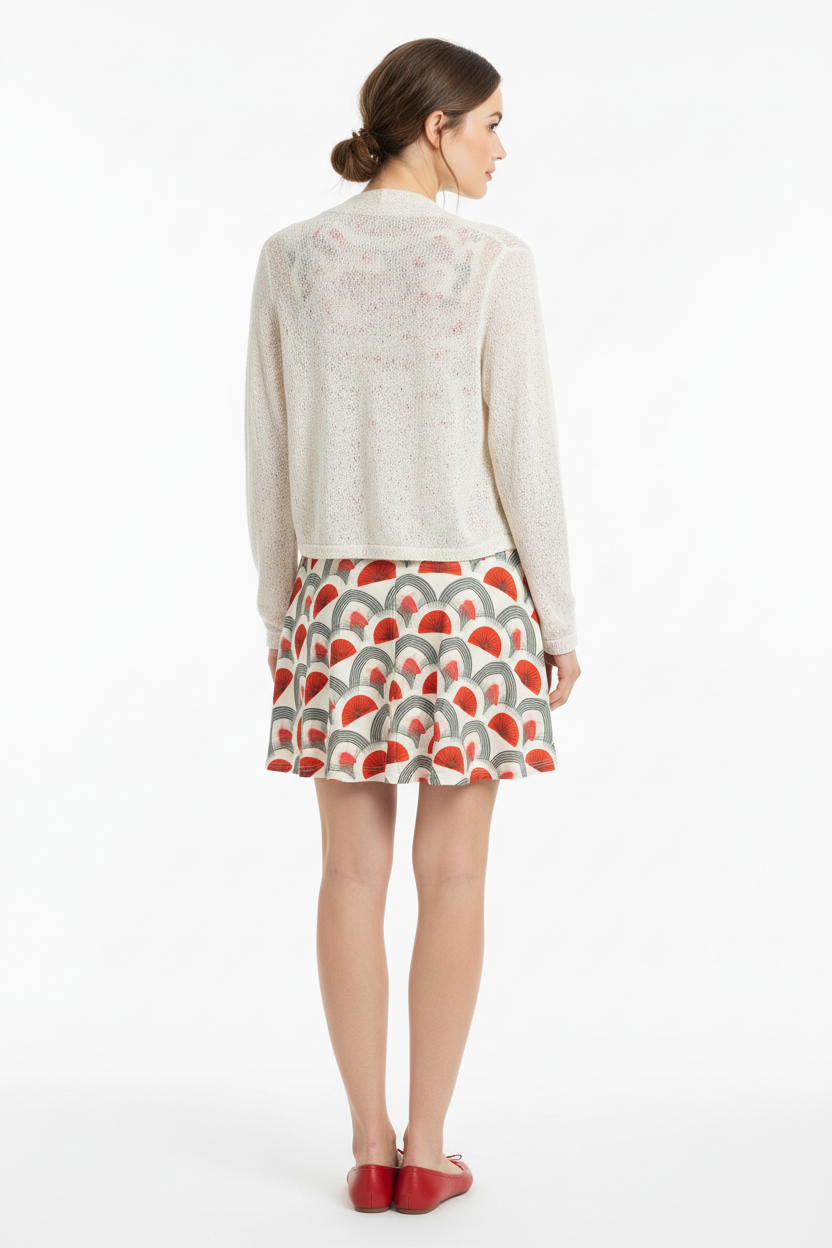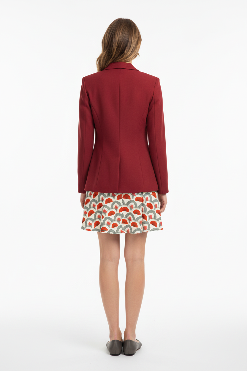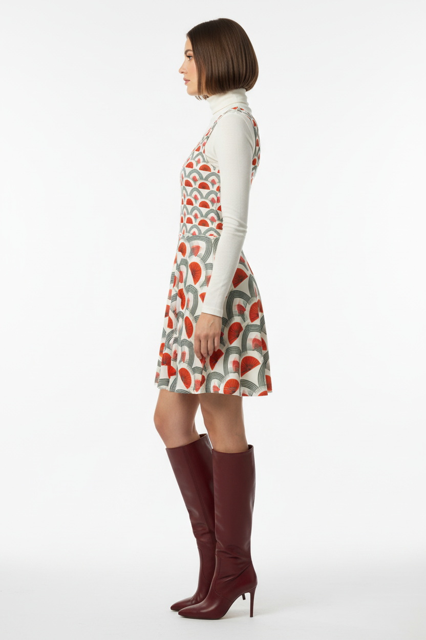 Step into timeless sophistication with the Rouge Moderne Fit & Flare Dress, where vintage art deco elegance meets contemporary style. The striking pattern features bold red semicircles and graceful gray arches on a cream canvas, creating a geometric masterpiece that commands attention with refined confidence.