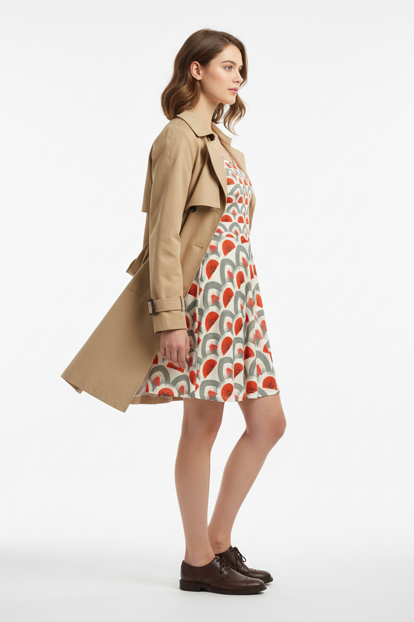 • Trench coat + oxford shoes = refined elegance