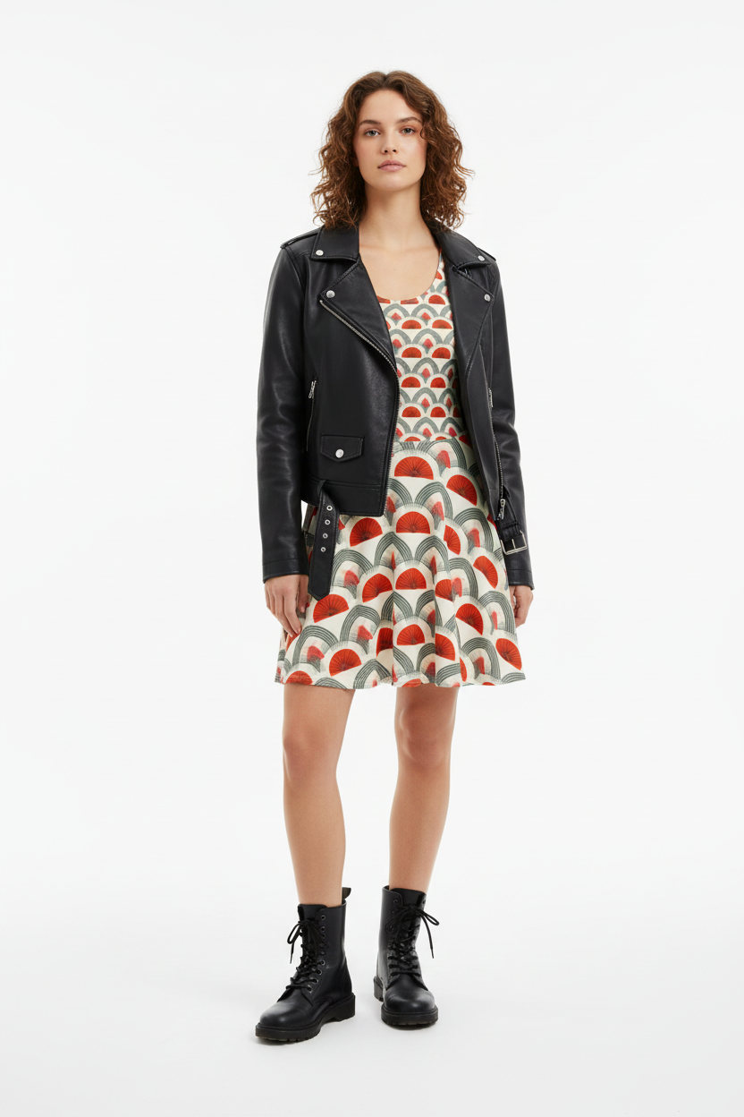 • Leather jacket + combat boots = rock-and-roll edge