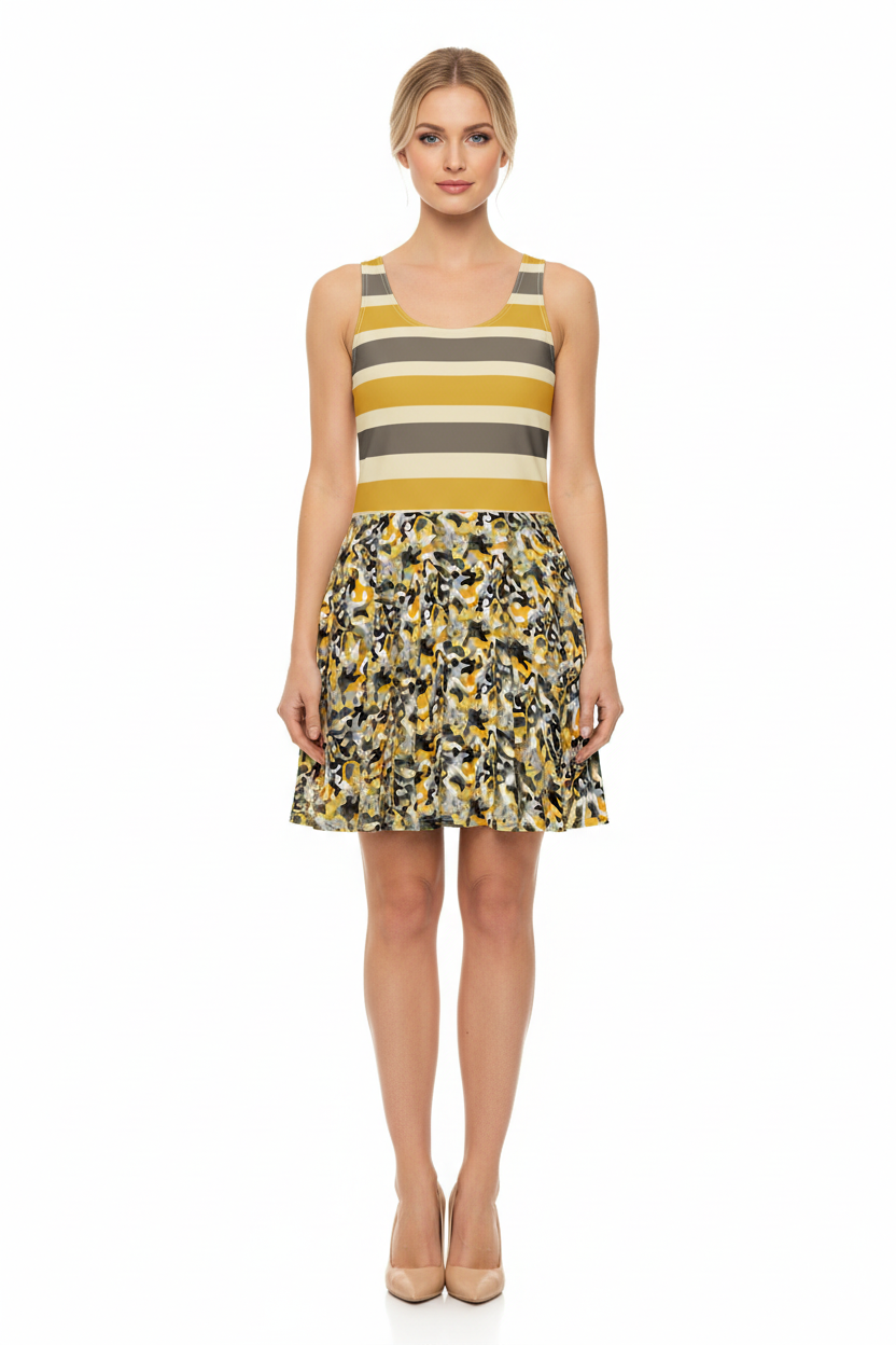 Golden Stripe Camo Skater Dress