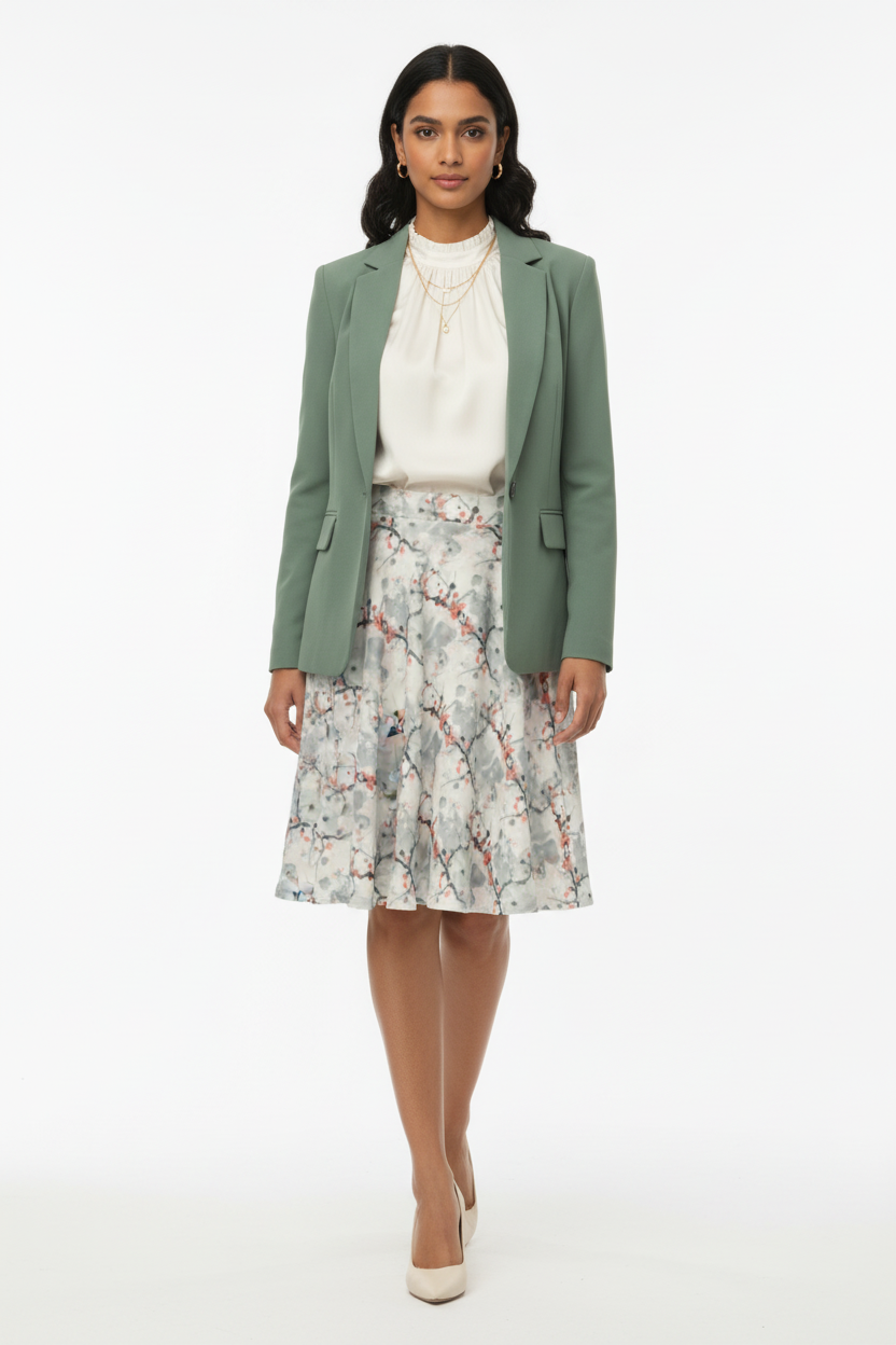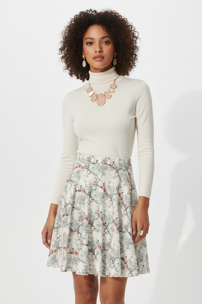 This romantic skirt pairs beautifully with crop tops for casual days, tucked-in blouses for work-appropriate looks, or fitted bodysuits for date nights. Layer with tights and boots for cooler weather or style with sandals for spring and summer. The soft sage and pink palette complements a wide range of tops and accessories, making it a versatile wardrobe essential.
