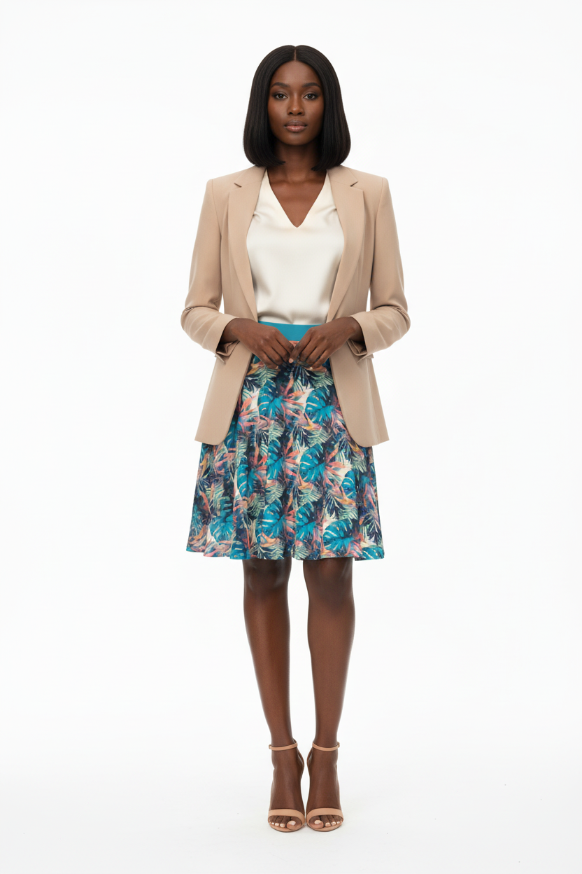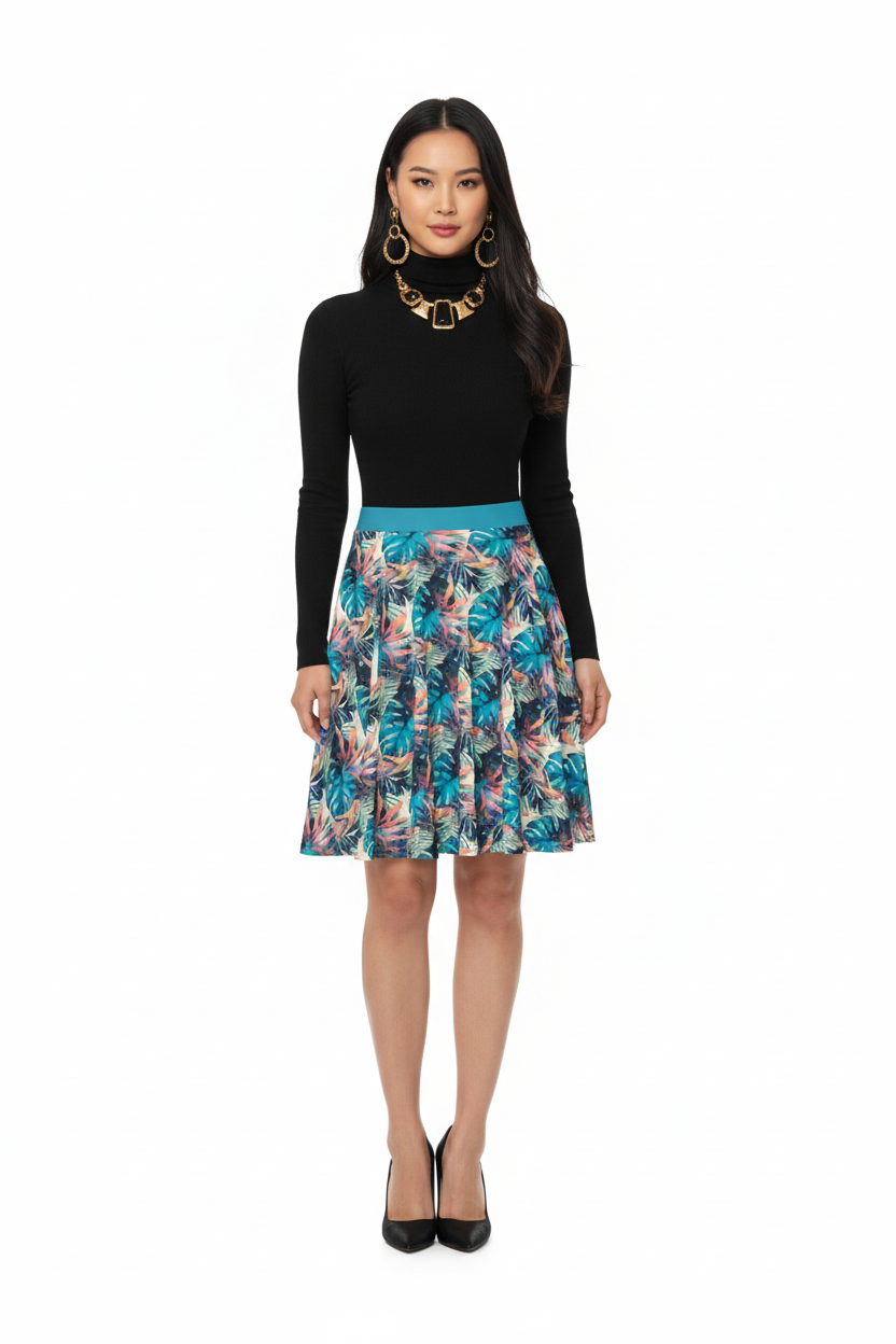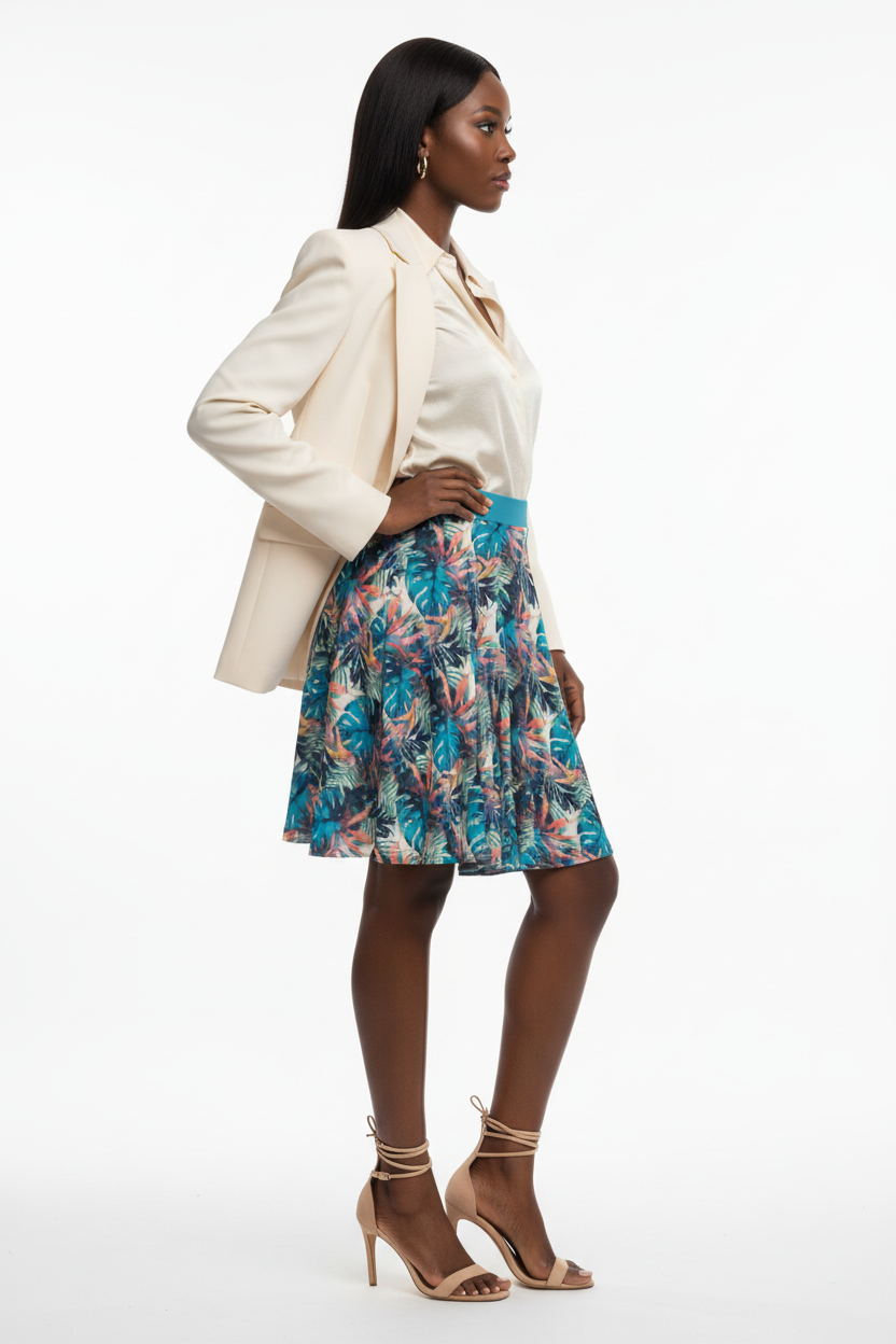 This skirt effortlessly transitions from casual to classy. Pair with a simple white tee and sneakers for laid-back weekend style, dress it up with a blouse and heels for work or events, or add a denim jacket for cool-weather layering. The bold tropical print makes styling easy—it's the statement piece that does all the work.