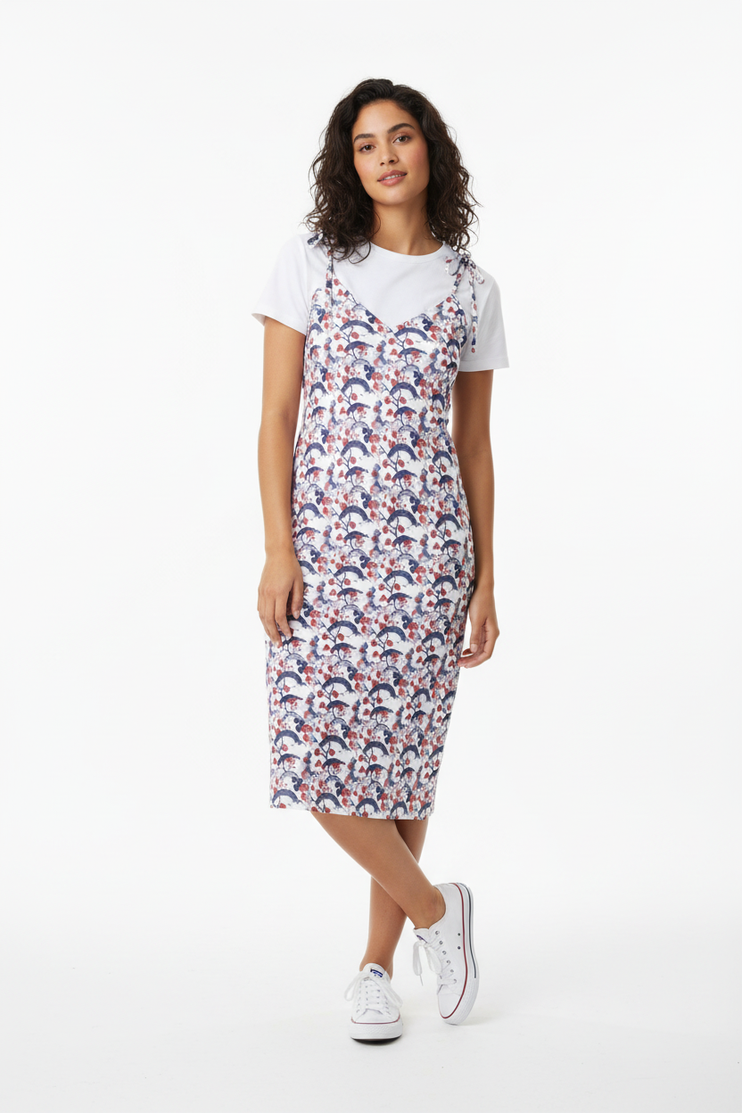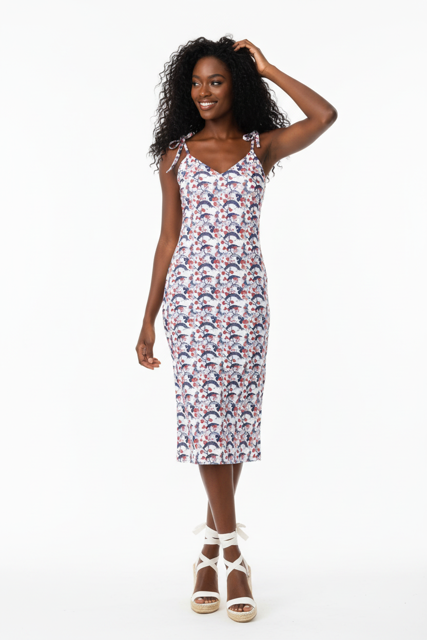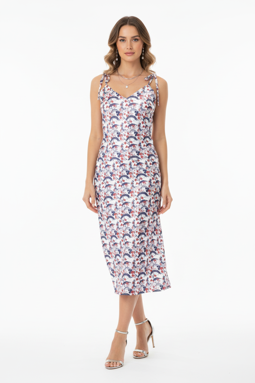 Sakura Waves Slip Dress - Women's Japanese Print Midi Dress