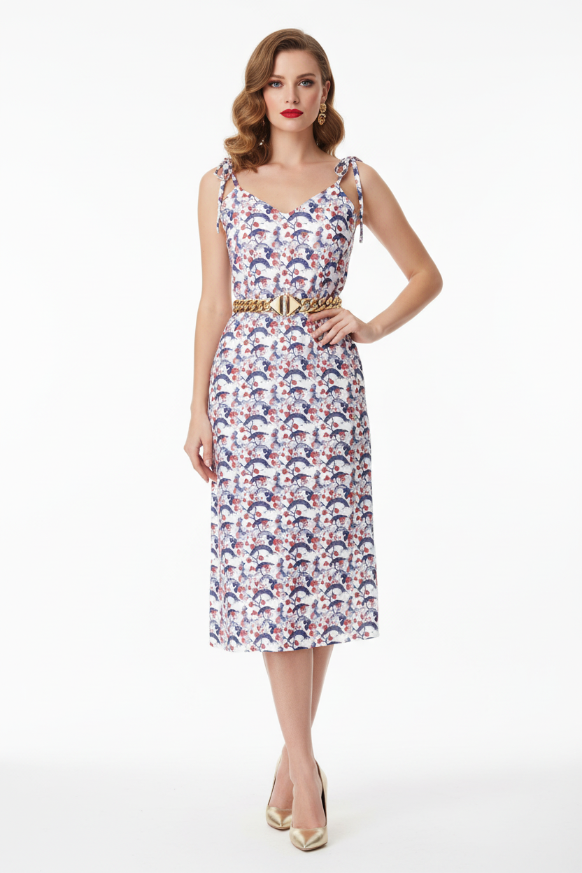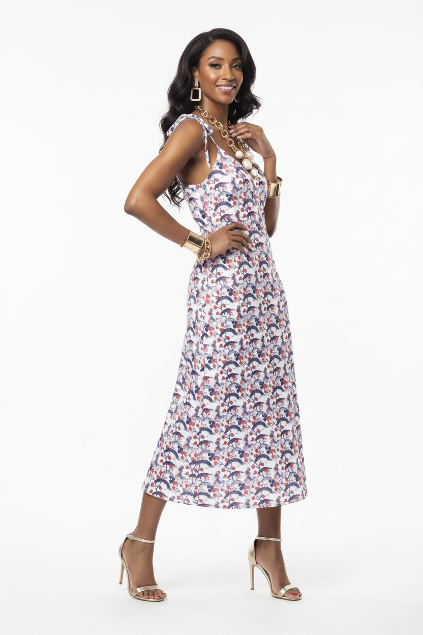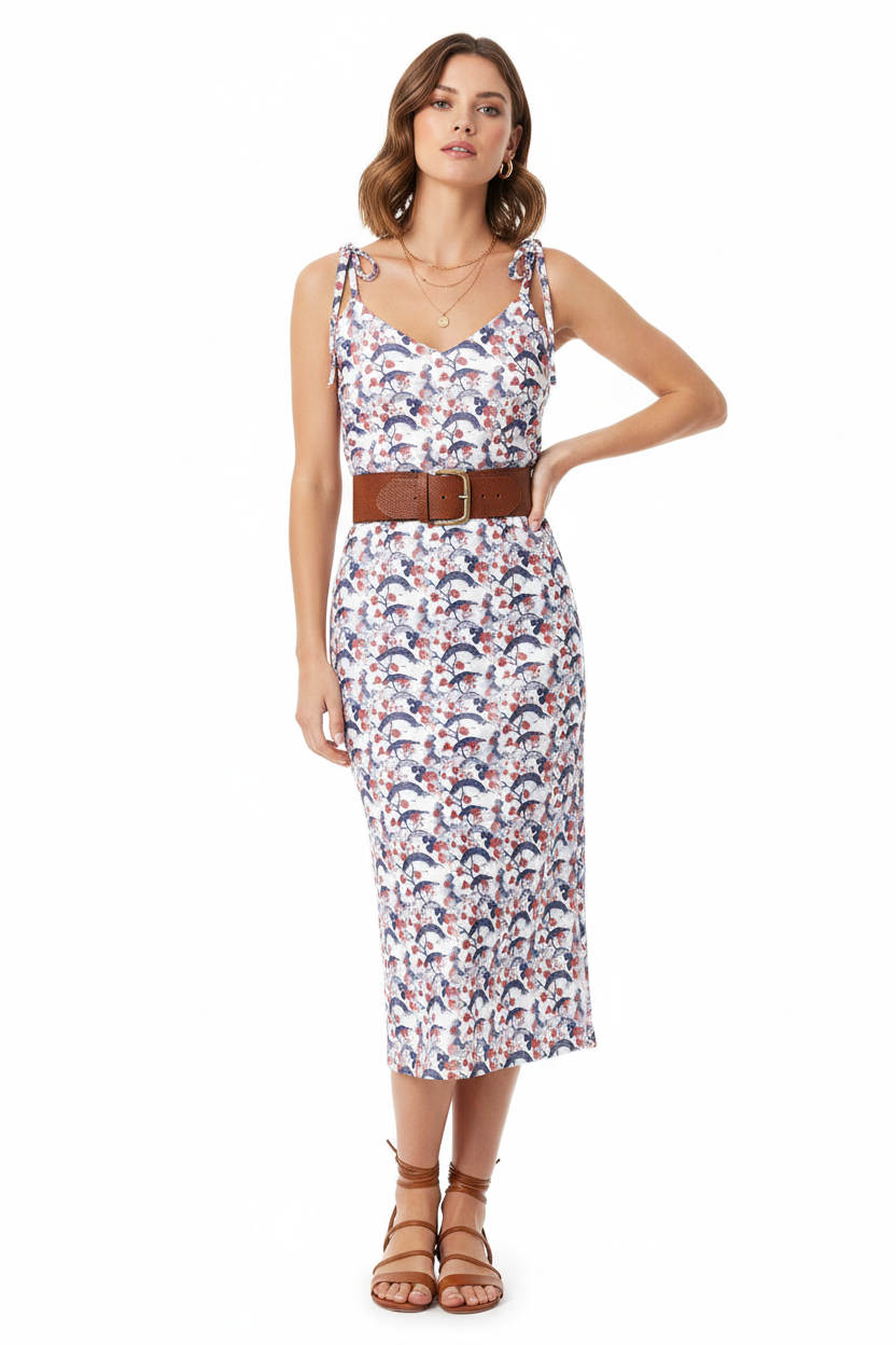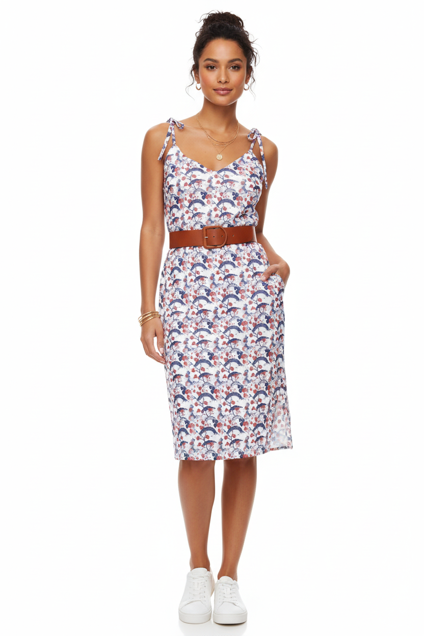 Sakura Waves Slip Dress - Women's Japanese Print Midi Dress
