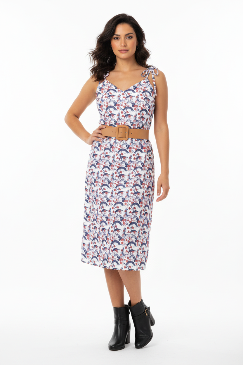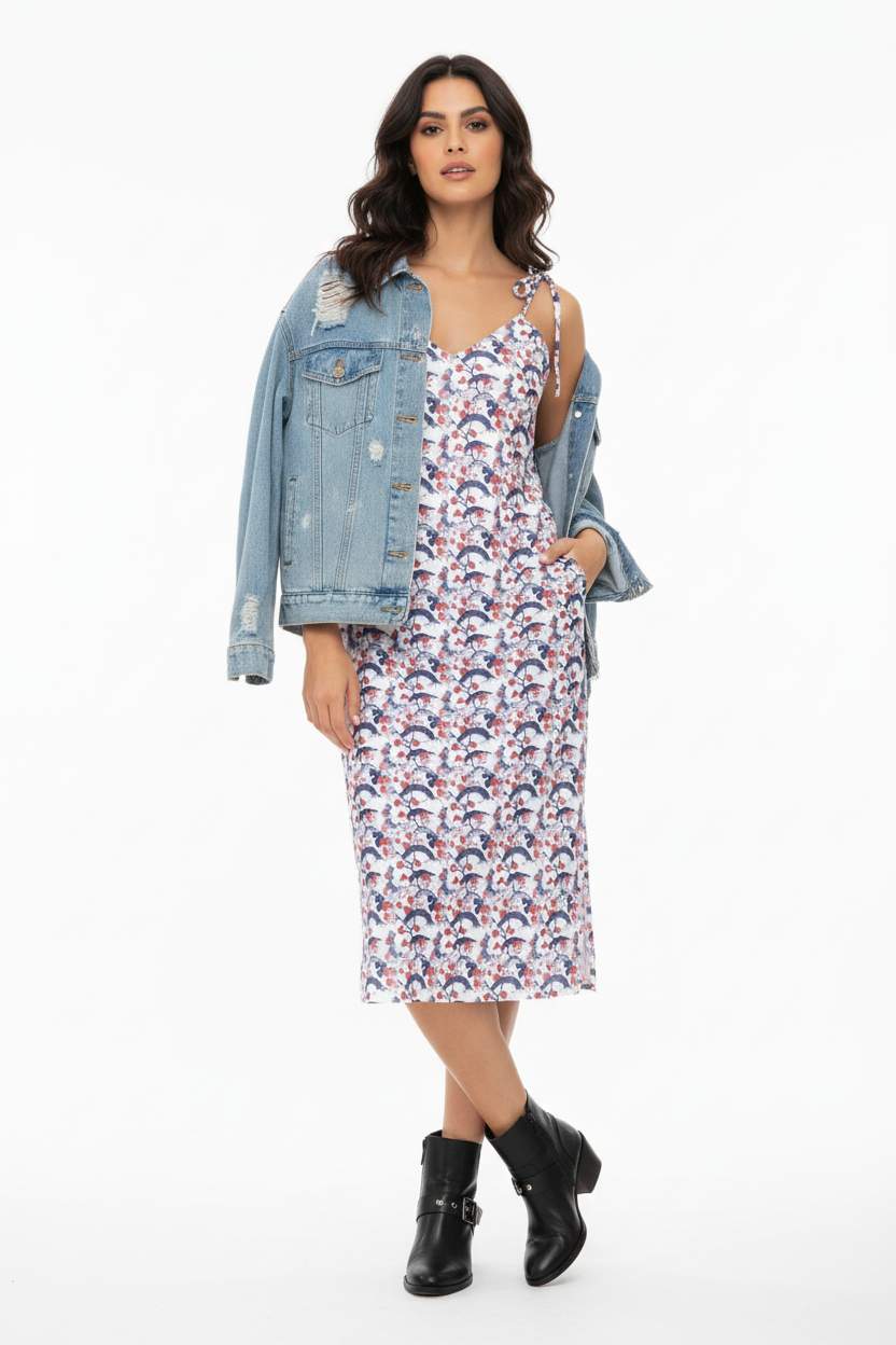 Crafted from 100% polyester with a smooth, lightweight feel, this slip dress drapes beautifully while keeping you cool and comfortable. The adjustable tie-shoulder straps allow you to customize the fit and length, while the relaxed silhouette provides effortless movement. The midi length offers versatile styling options—dress it up with heels or keep it casual with sandals.