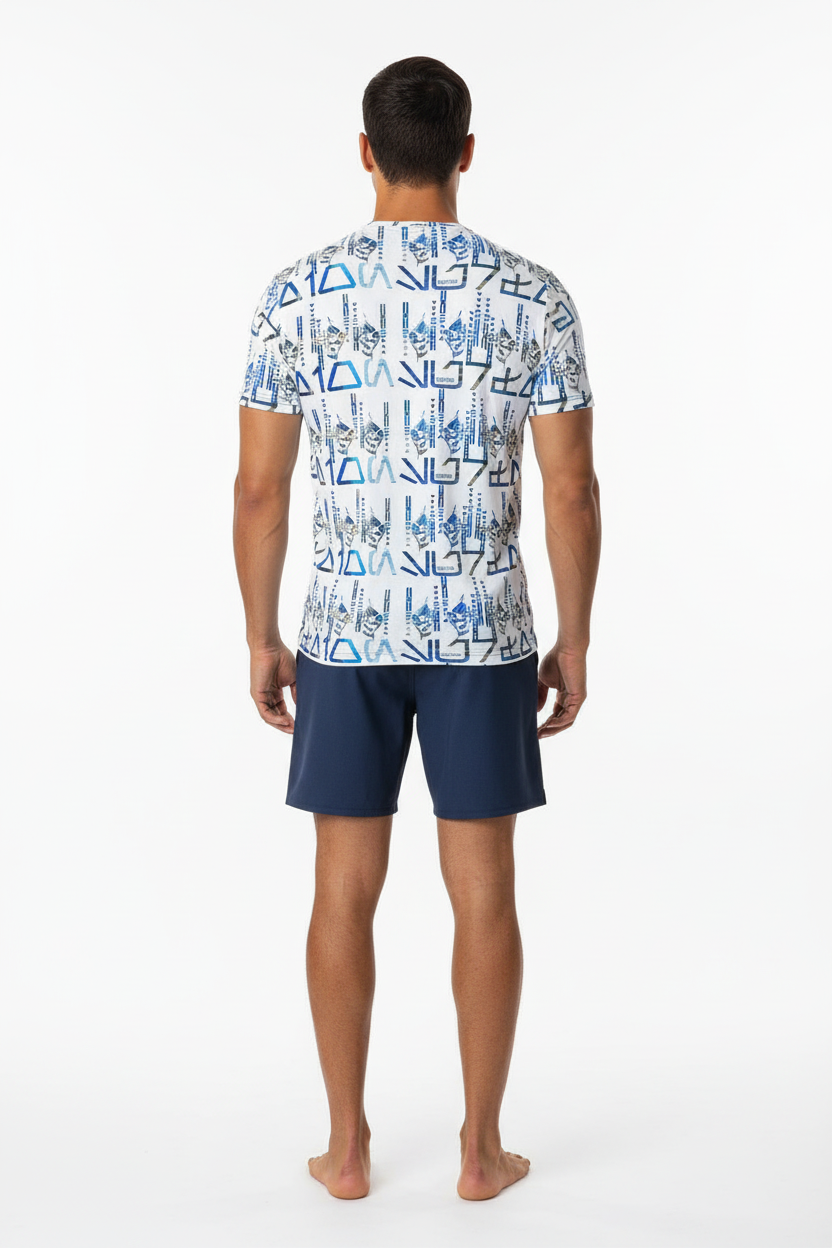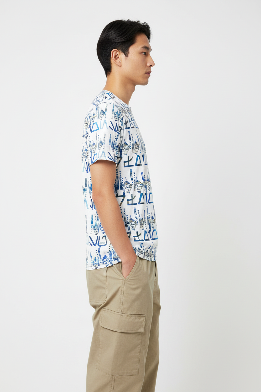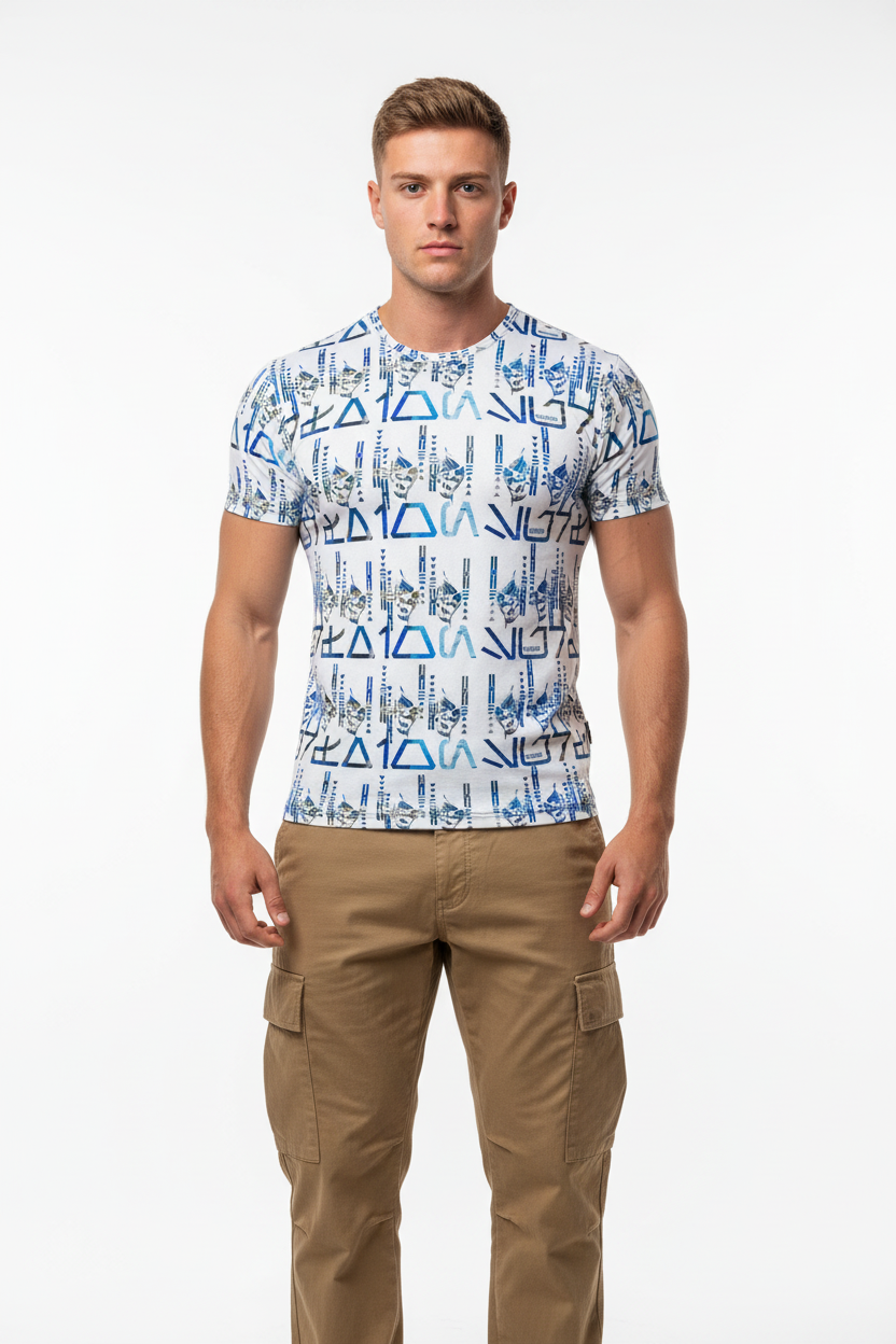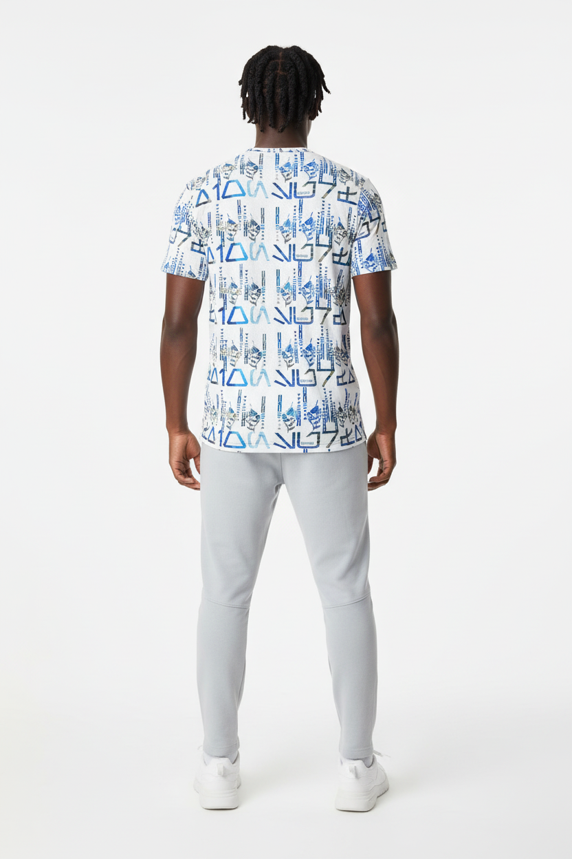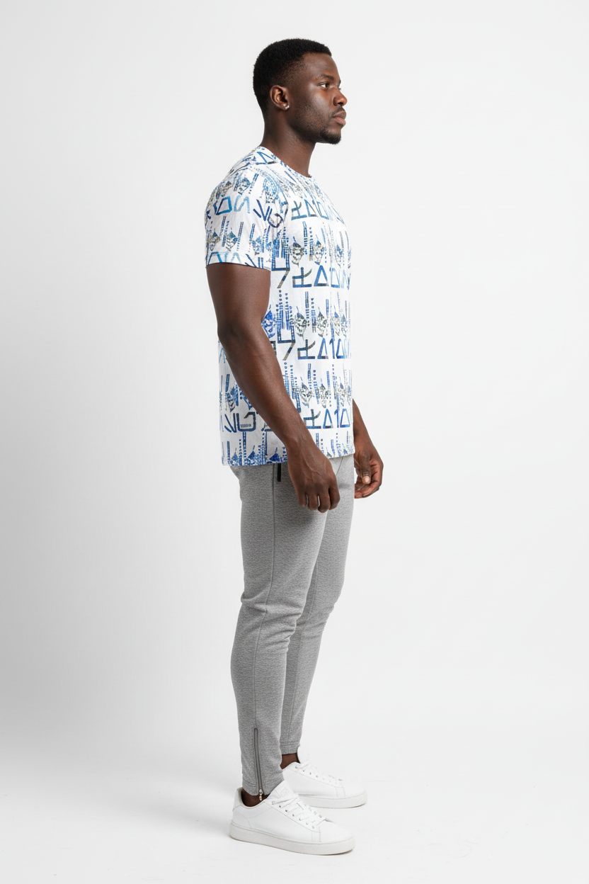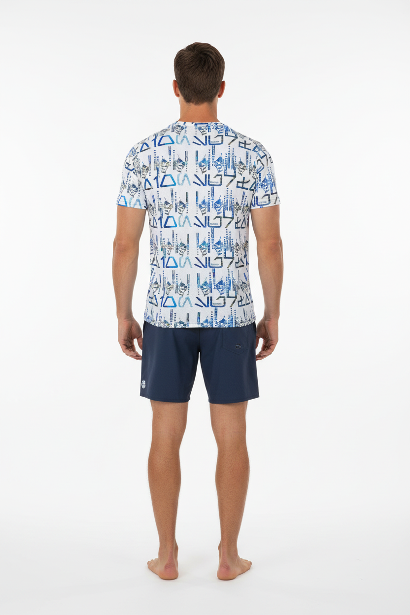 The Tribals Men's Athletic T-shirt brings bold, geometric tribal-inspired design to your active lifestyle. Featuring a striking blue symbol pattern on a white base, this performance tee combines eye-catching style with technical fabric that keeps you comfortable through every workout, run, or casual day out.