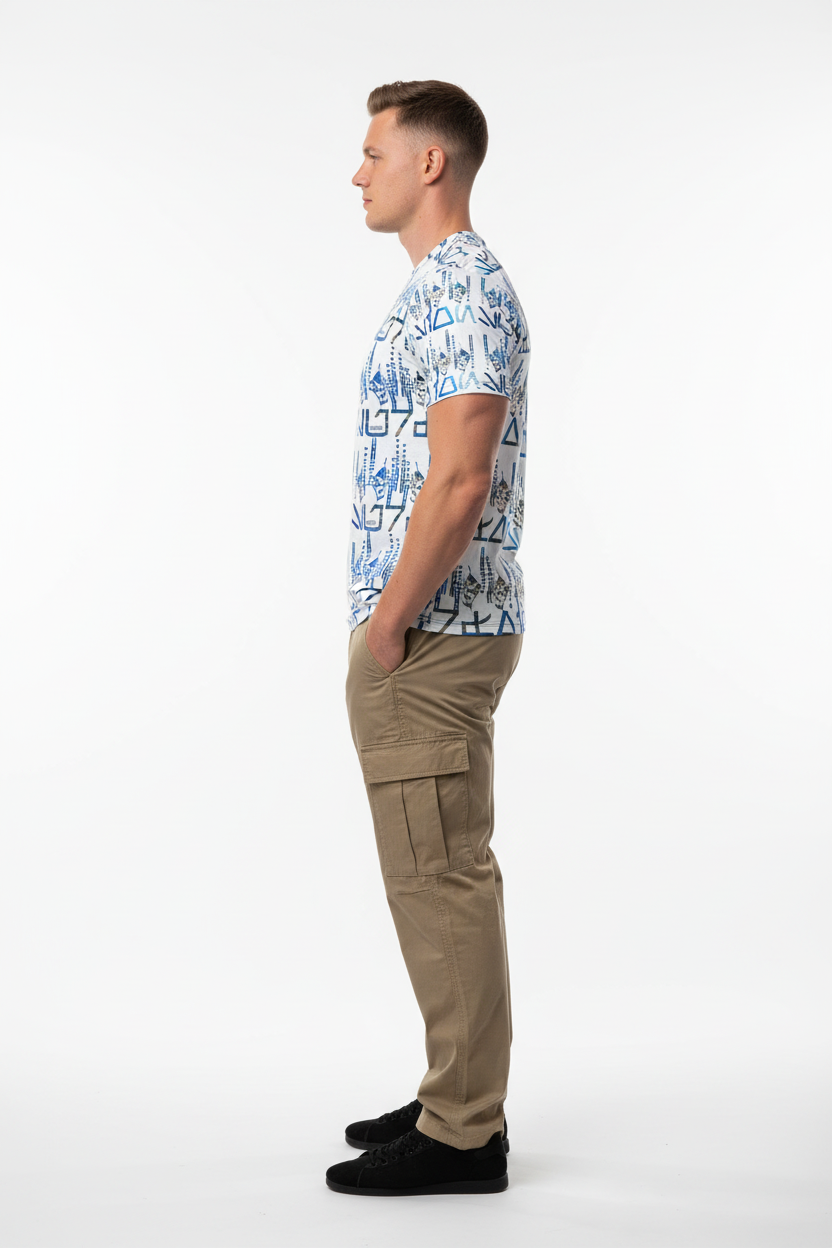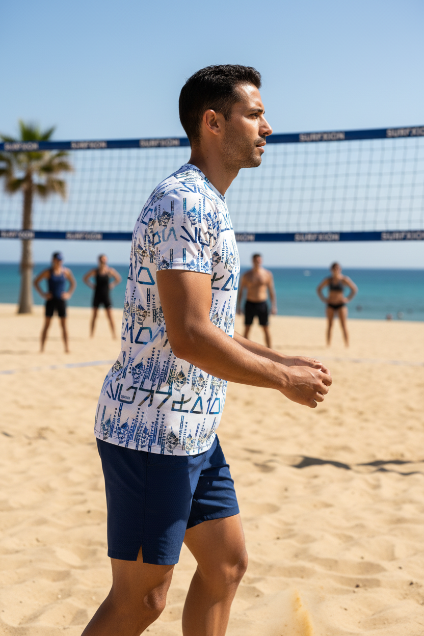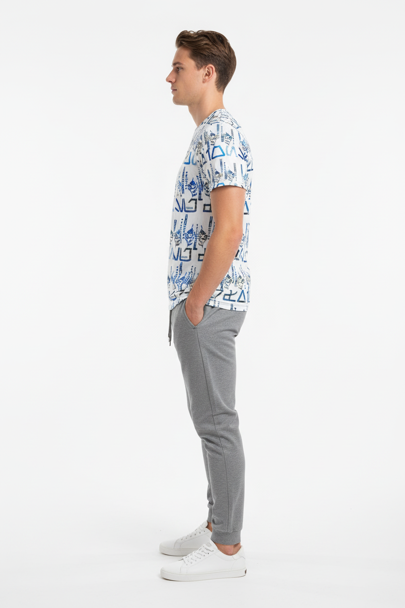 This athletic tee transitions seamlessly from gym to street. Pair it with navy joggers for a coordinated athletic look, black shorts for classic sporty style, charcoal sweatpants for post-workout comfort, or even light denim for casual streetwear. The tribal-inspired pattern adds instant edge to any outfit.