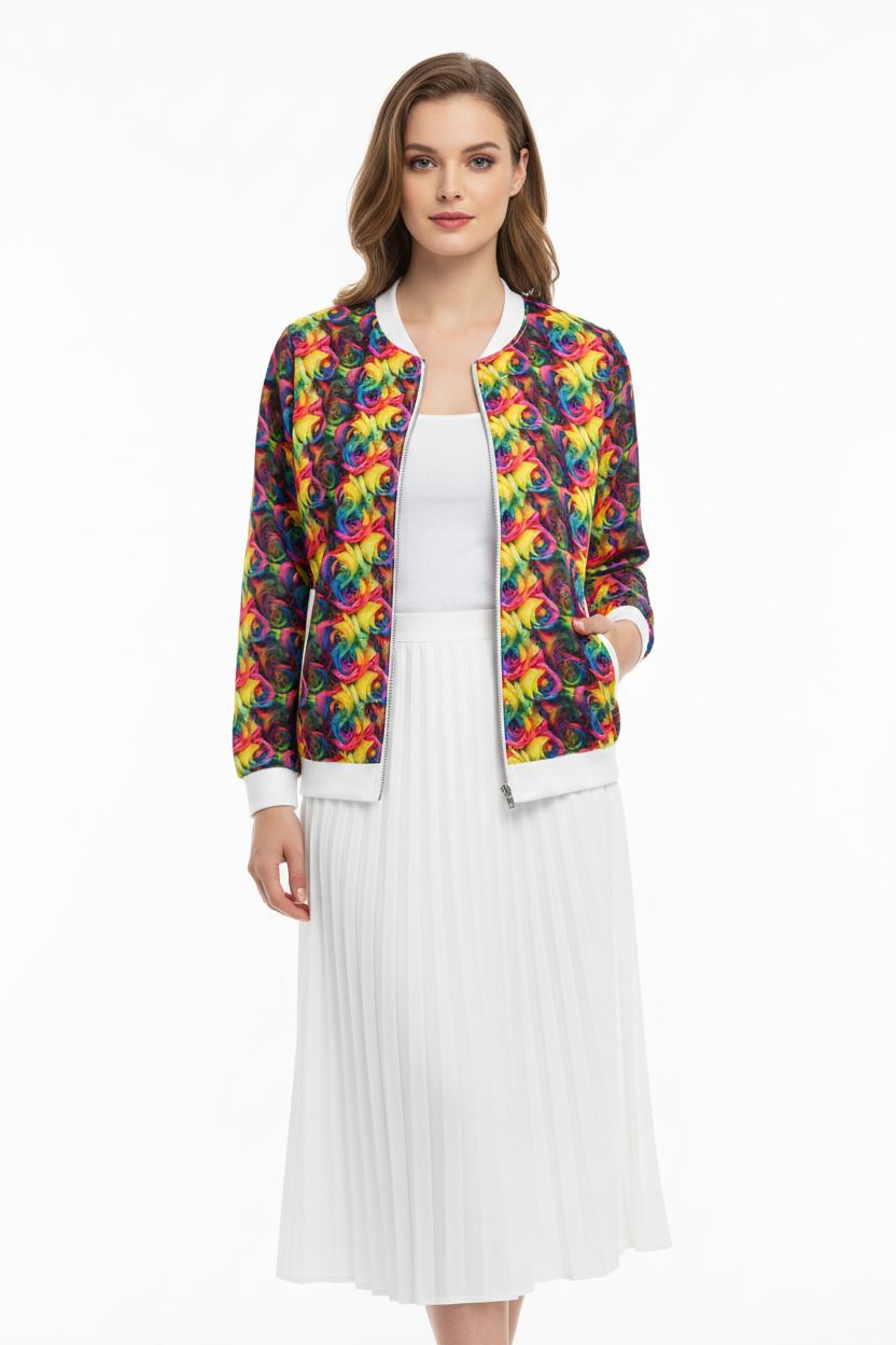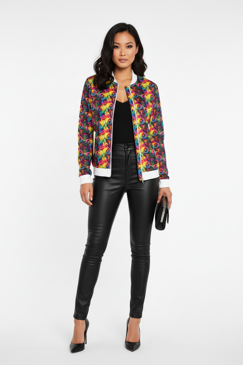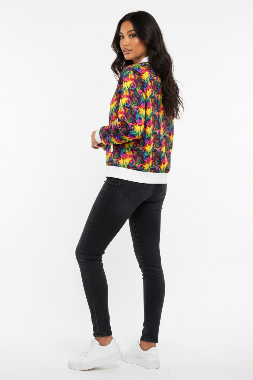 Rainbow Rose Bomber Jacket