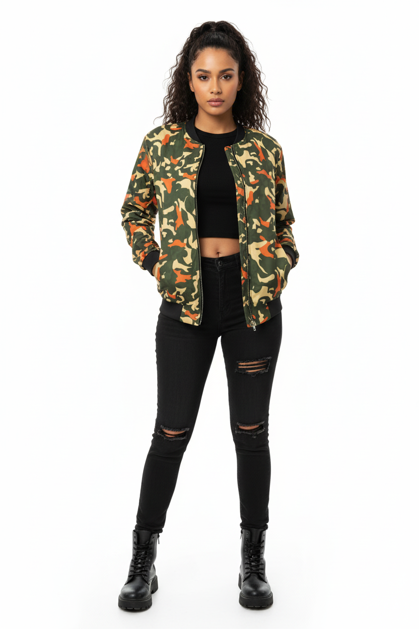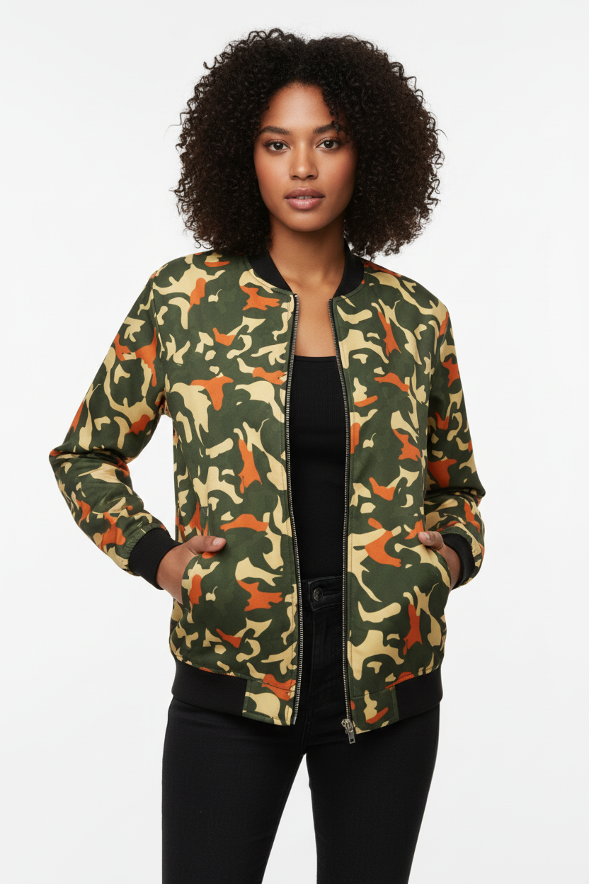 This bomber jacket transitions effortlessly from casual to street style. Layer over a basic tee and jeans for everyday wear, pair with joggers for athleisure vibes, style over a hoodie for extra warmth, or dress up with black pants for urban-chic looks. The bold camo print makes it a statement piece that stands out from traditional military patterns.