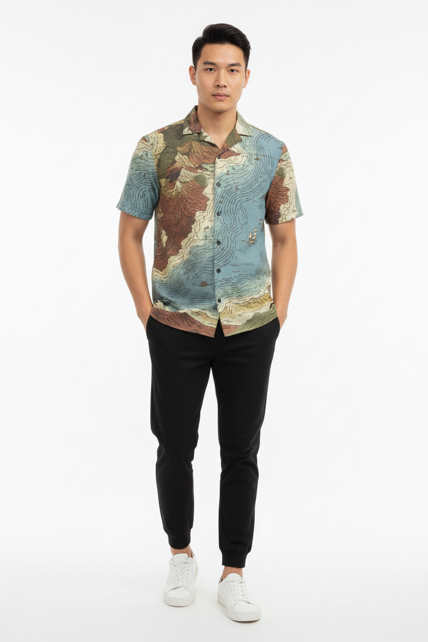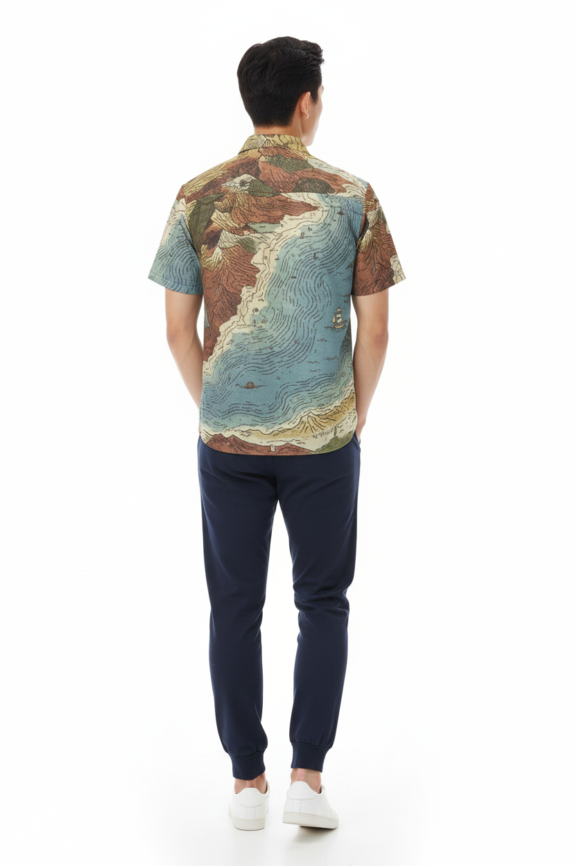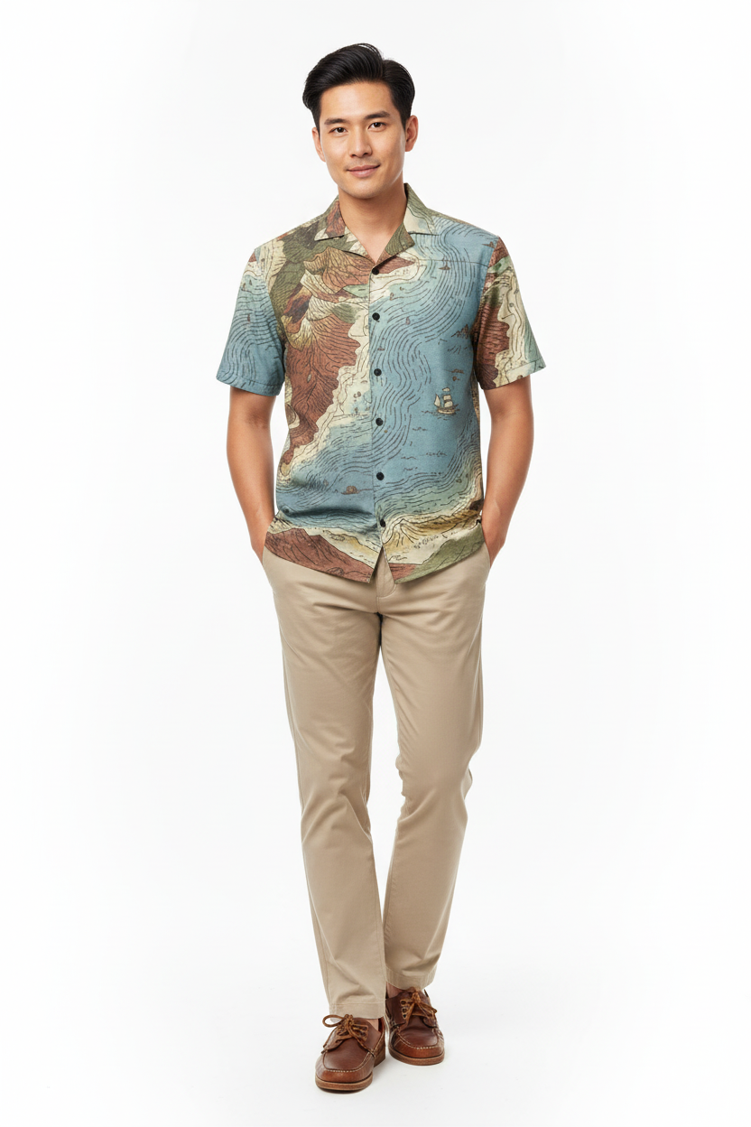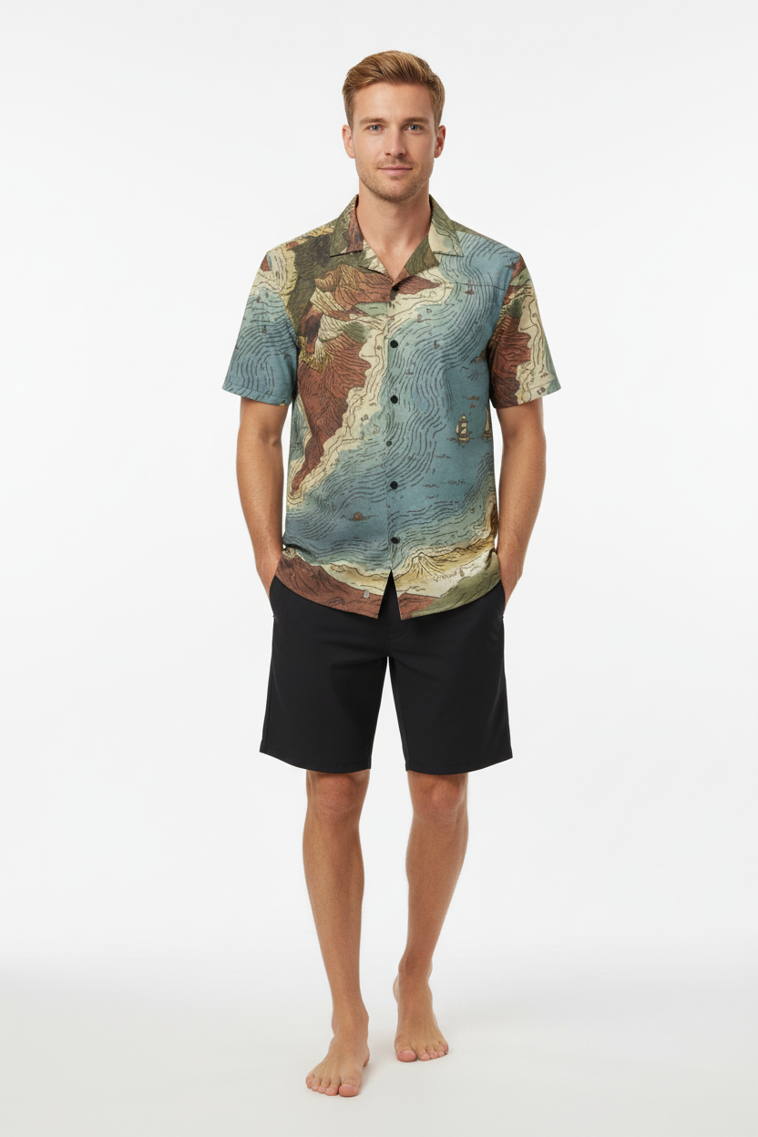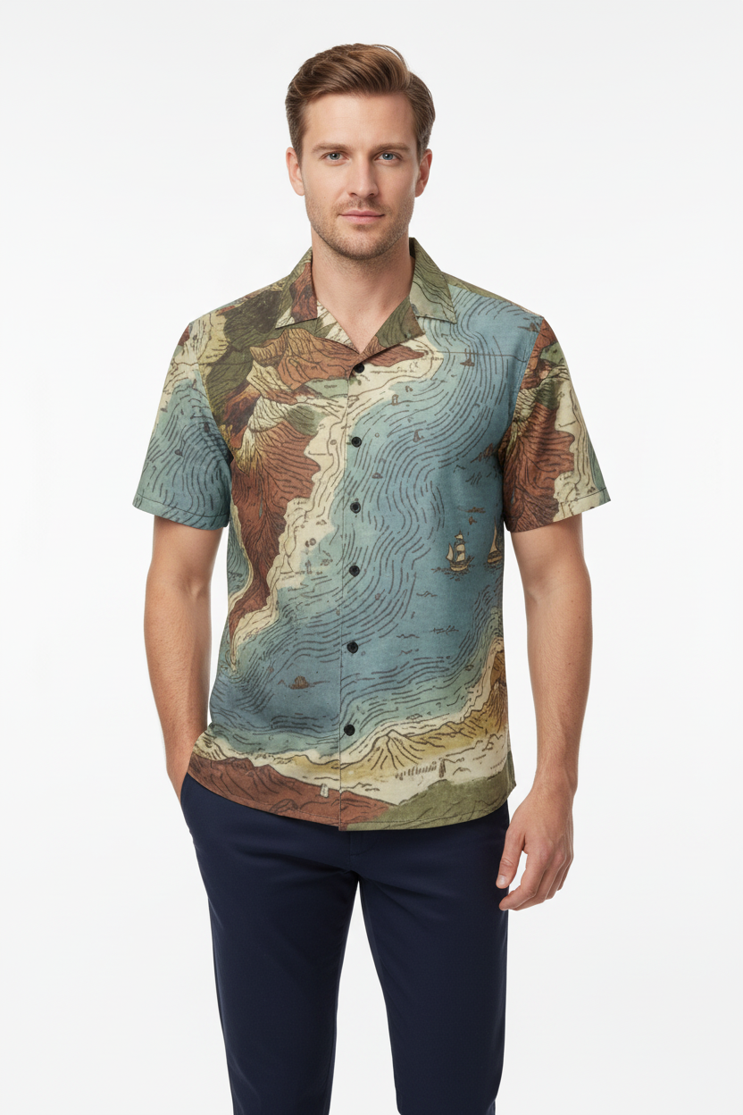 Designed for those who appreciate nautical aesthetics and vintage cartography, this unisex shirt transitions seamlessly from beach days to casual outings, bringing a touch of maritime adventure to your wardrobe.