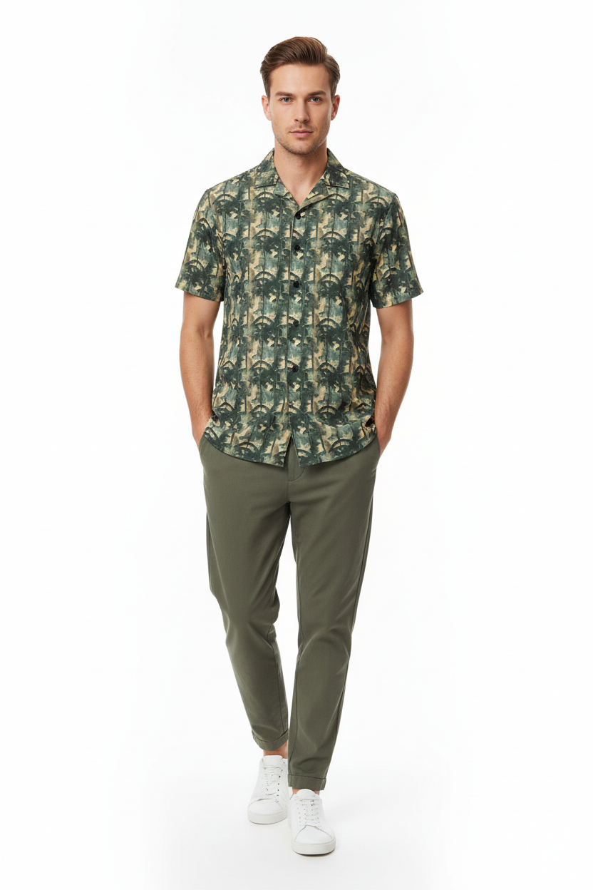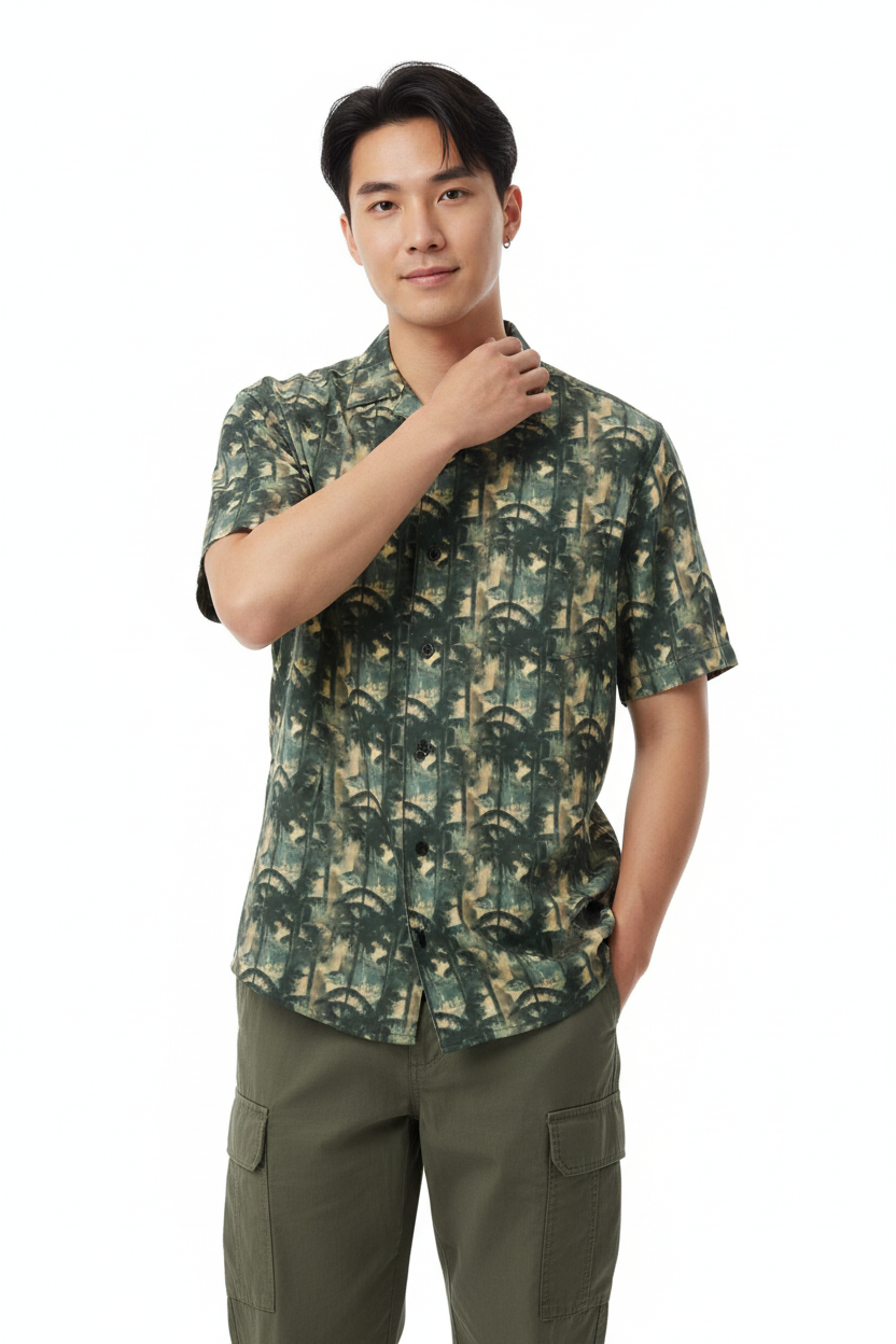 Bamboo Forest Camo Button Shirt - Unisex Recycled Resort Wear