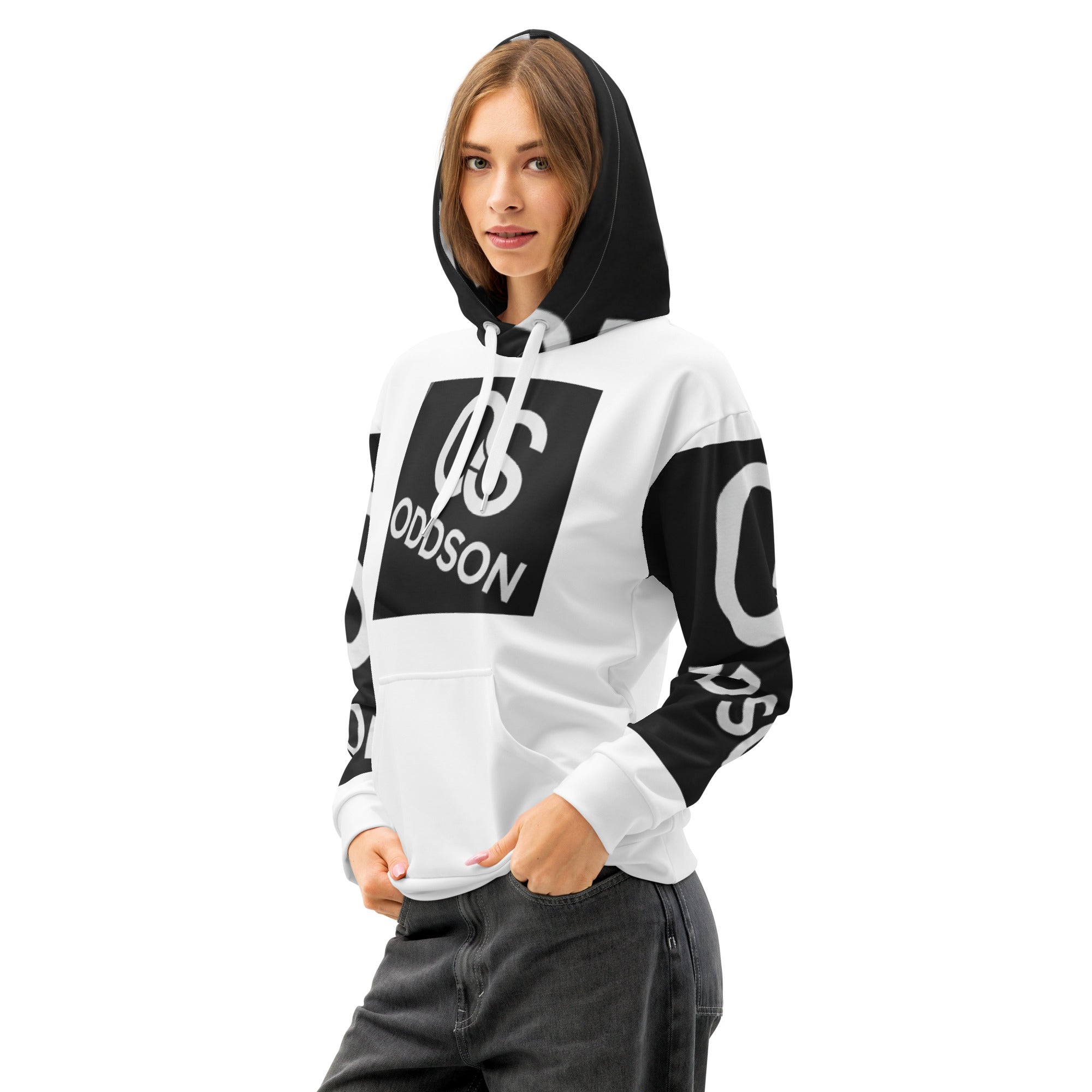 ODDSON Block Logo Unisex Cotton Hoodie - Black & White