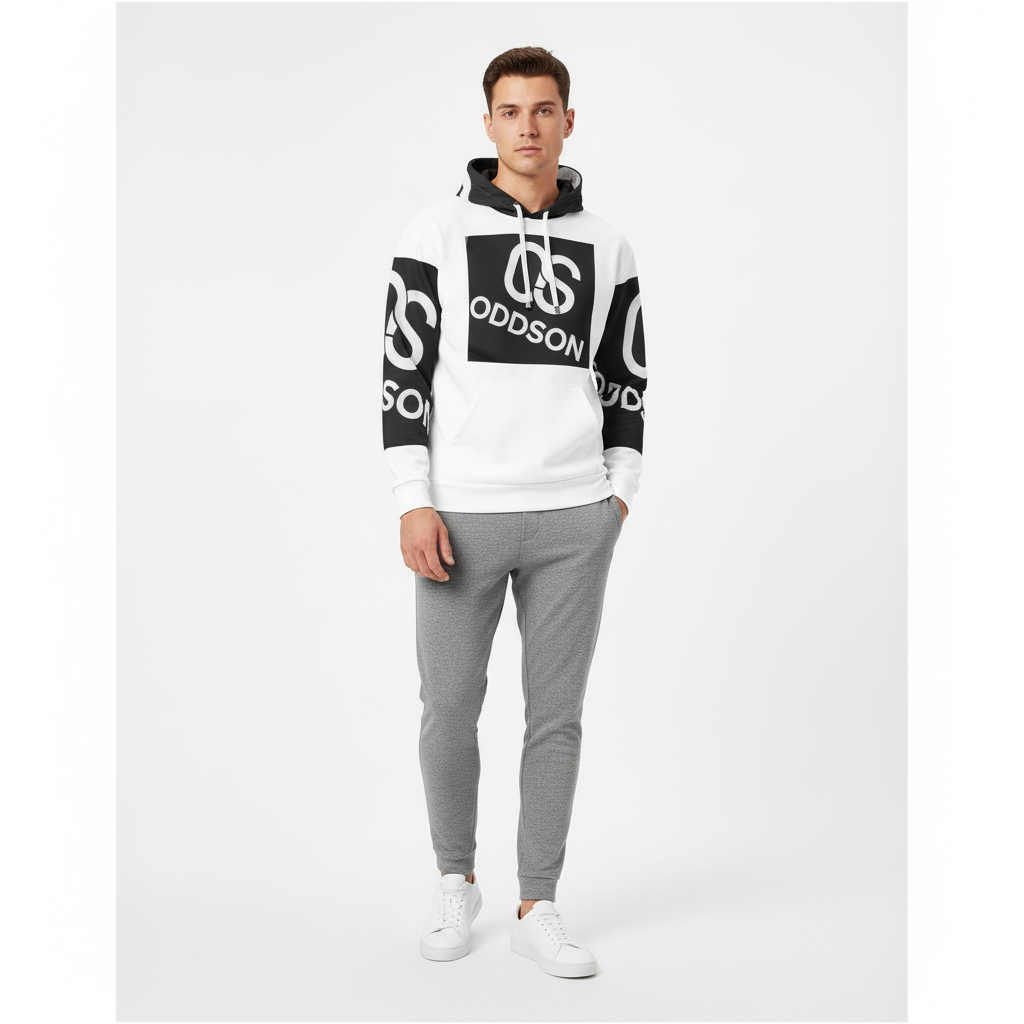 The ODDSON Block Logo Unisex Cotton Hoodie delivers striking visual impact with its bold black and white colorblocking and oversized OS ODDSON logo. This statement hoodie combines graphic design with premium comfort for those who embrace bold, unapologetic style.