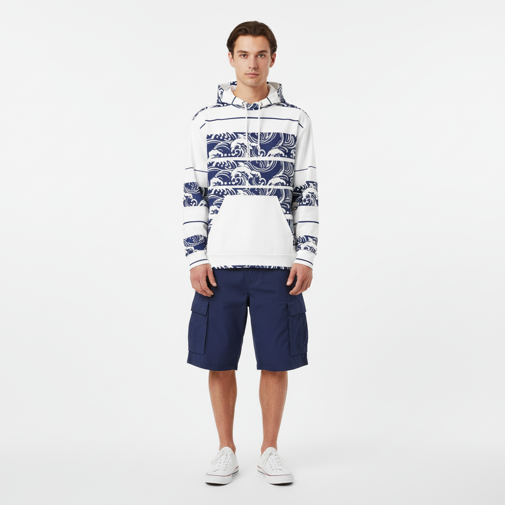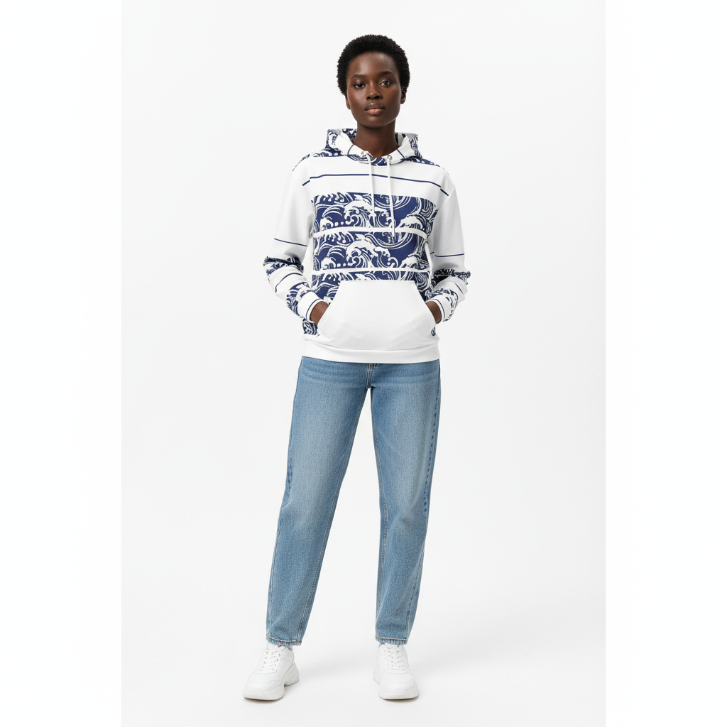 From beach days to city streets, the Ocean Wave Stripe Hoodie delivers that perfect blend of artistic expression and everyday comfort. The traditional Japanese wave pattern creates a timeless aesthetic while the horizontal stripe layout adds modern edge. Pair it with blue jeans for coastal casual, black joggers for sleek street style, or white pants for a fresh monochromatic look. This hoodie is your foundation for building looks that celebrate ocean culture and artistic design.