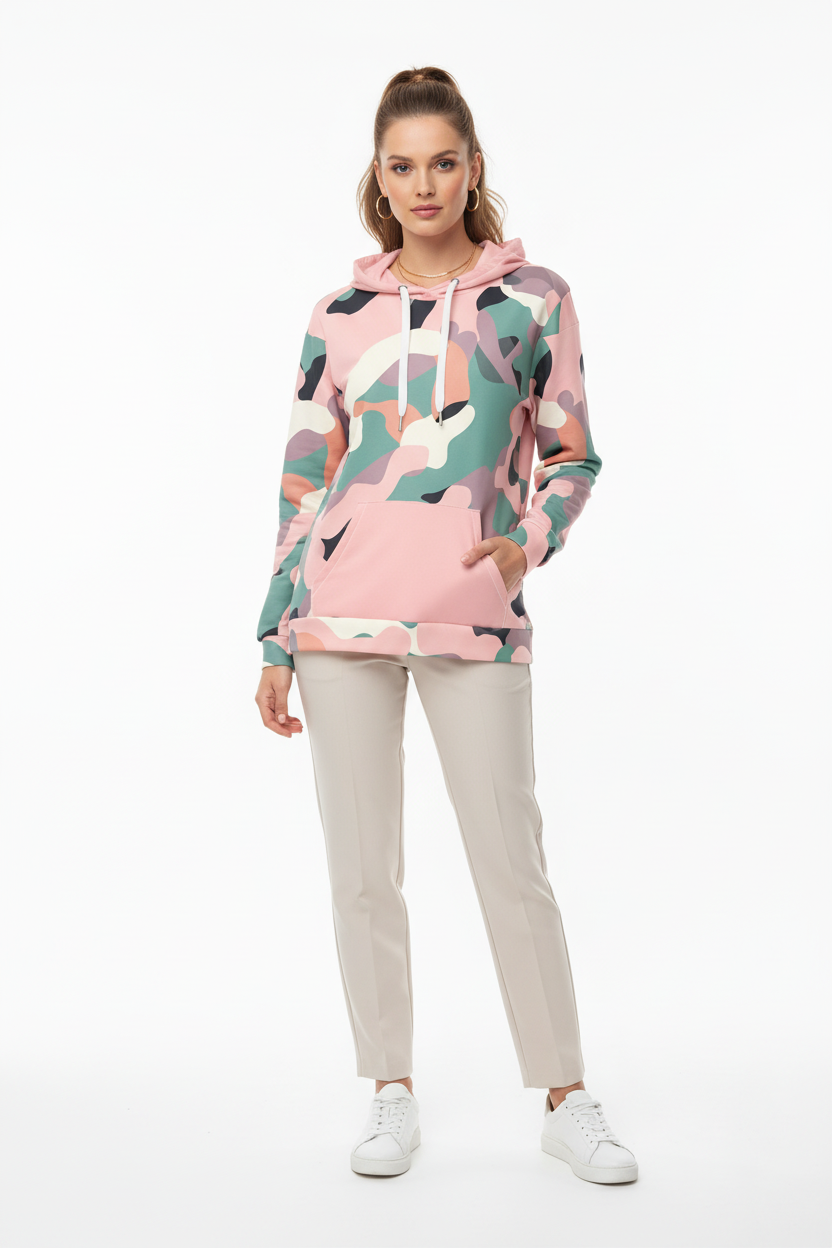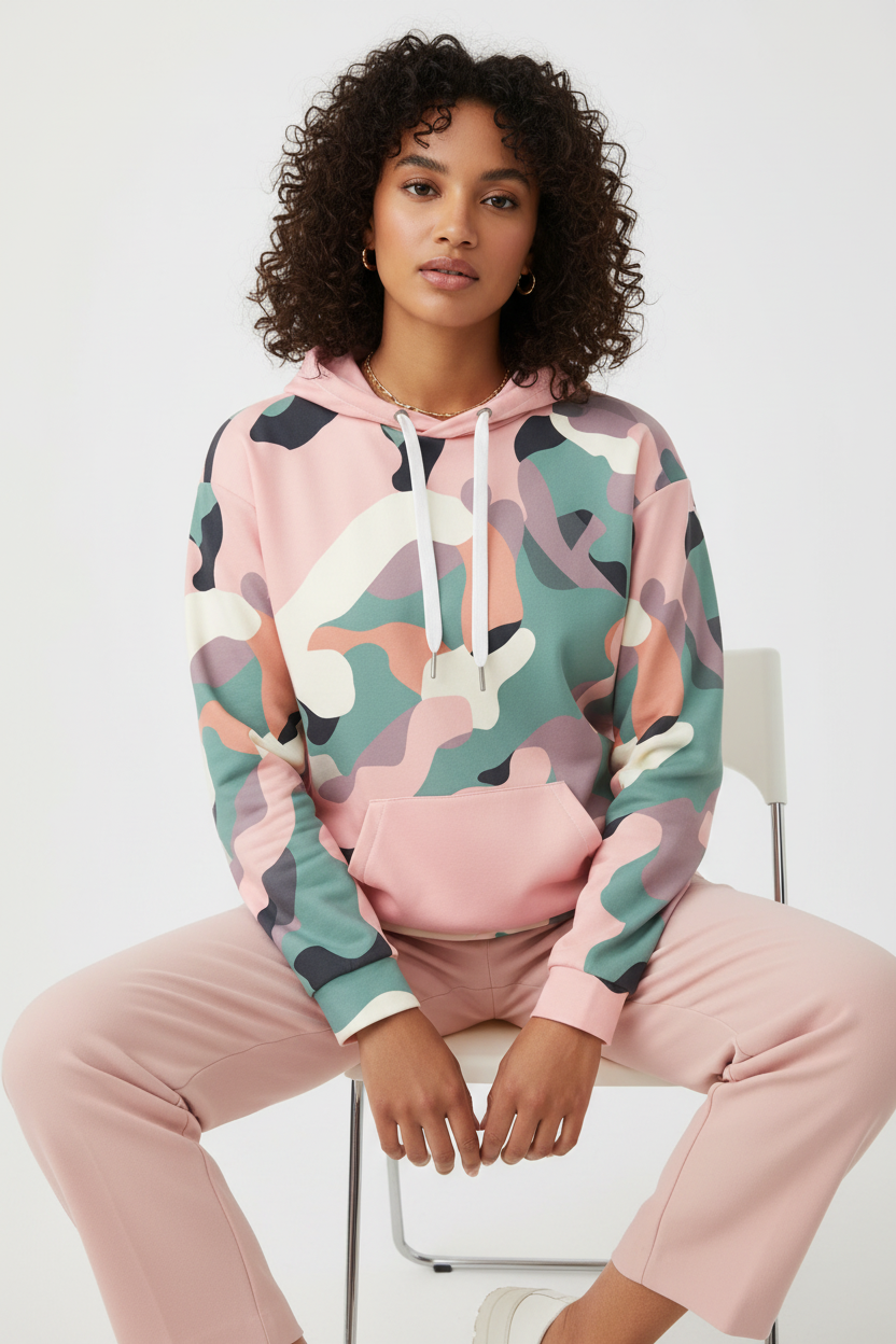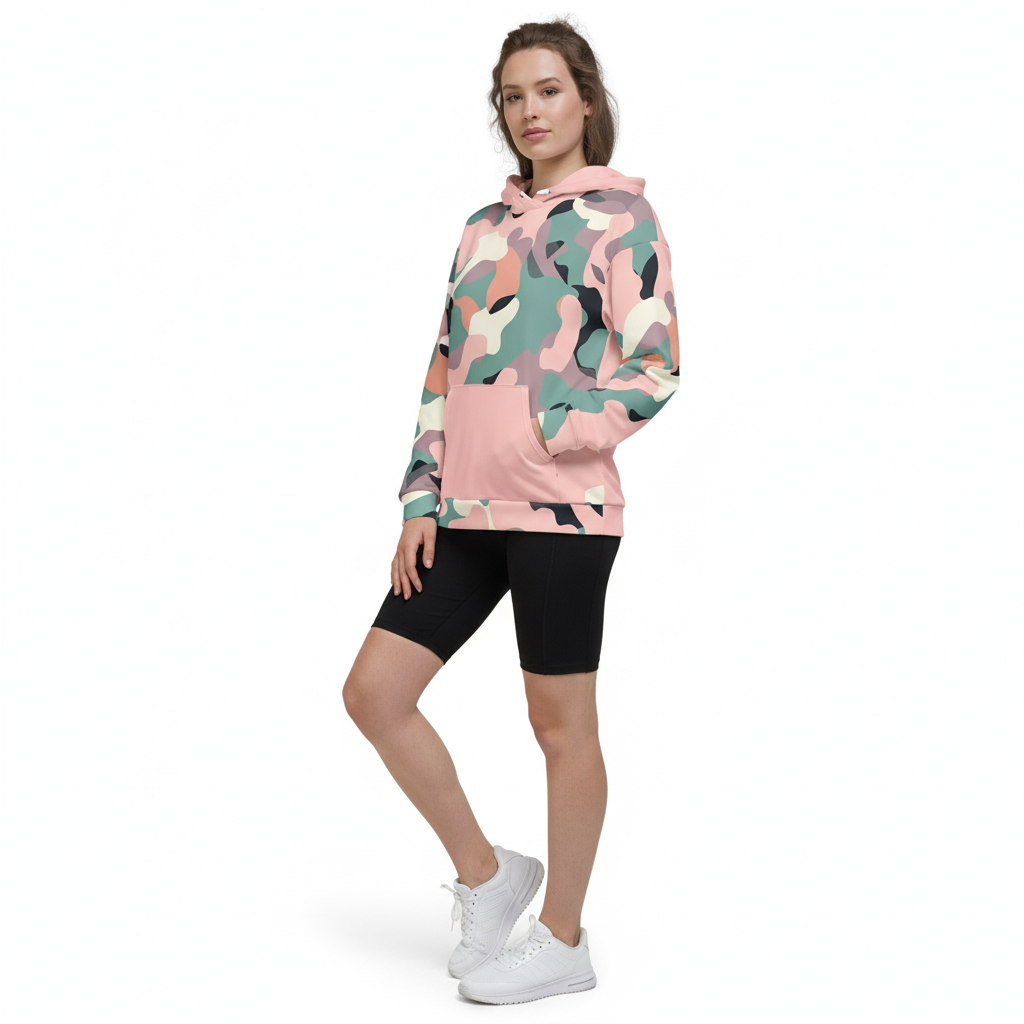 Everyday wear, casual outings, travel, lounging, layering, outdoor adventures, weekend activities, and making a bold style statement. The unique pink and teal camo print ensures you'll stand out from the crowd.