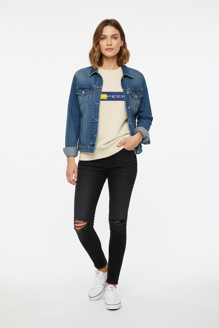 - Denim Essential: Layer with a denim jacket and black jeans for double denim done right