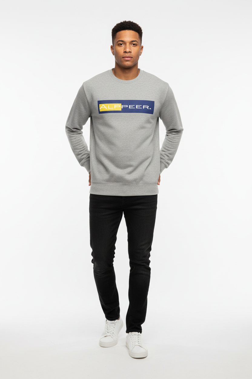This premium unisex sweatshirt features the iconic ALPPEER logo in a bold navy and yellow colorblock design—clean, contemporary, and instantly recognizable. Crafted with soft fleece interior and a classic crew neck silhouette, this sweatshirt delivers all-day comfort with a modern streetwear edge.