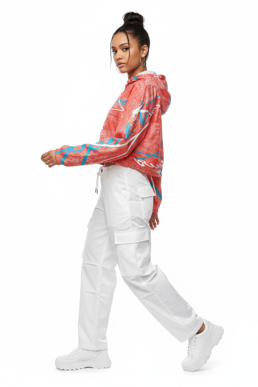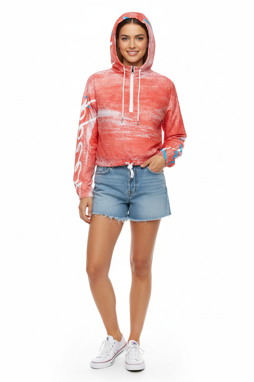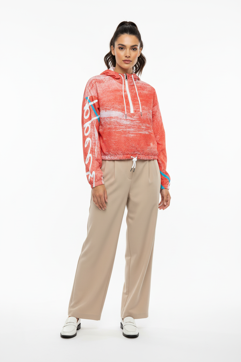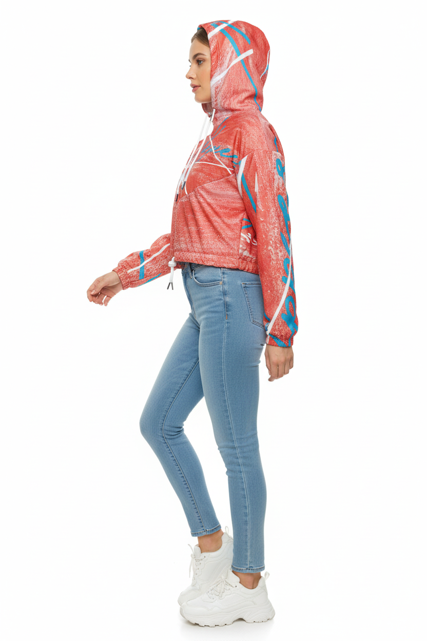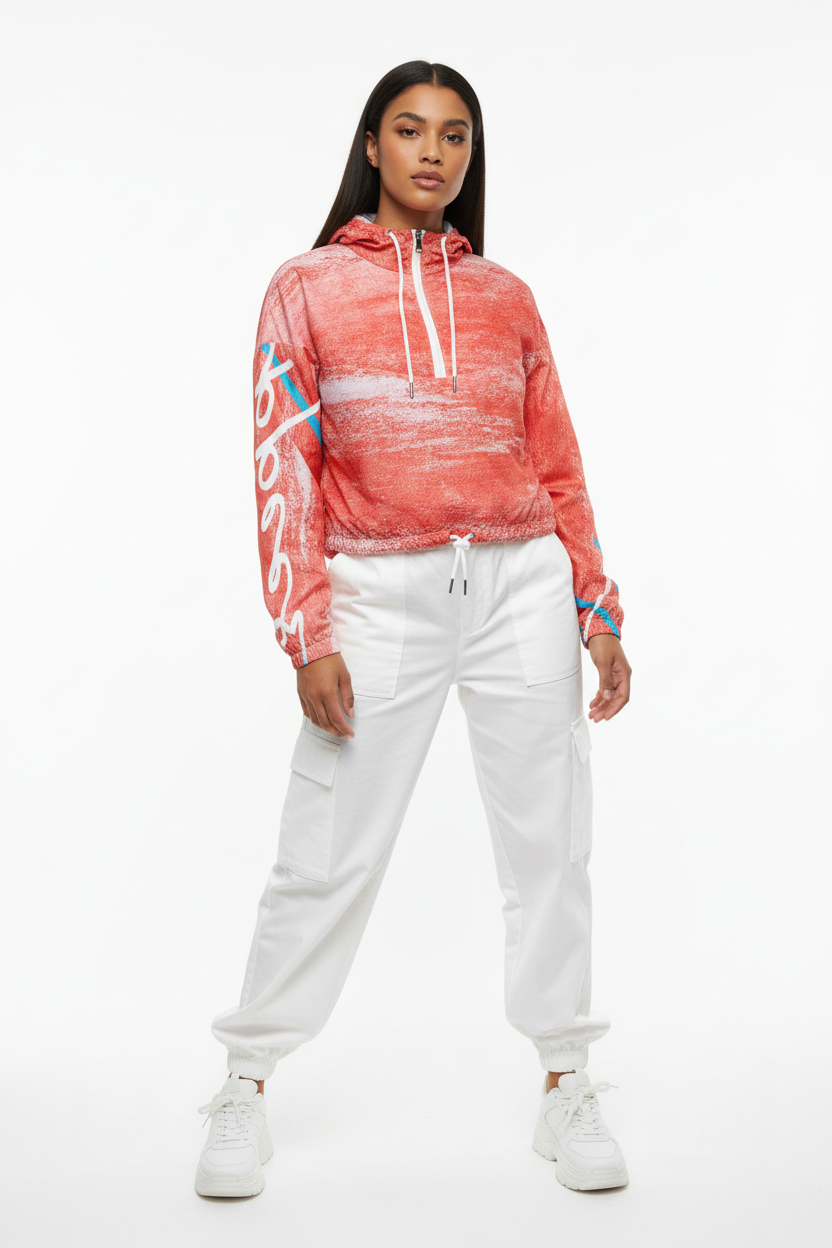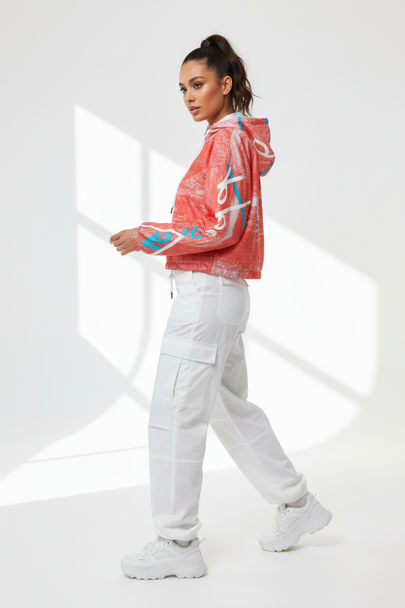 Coral Brushstroke Cropped Windbreaker