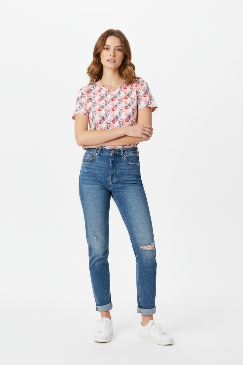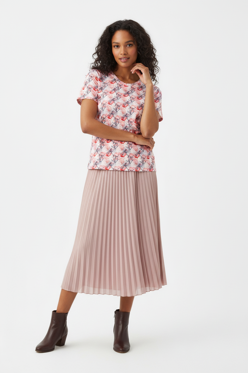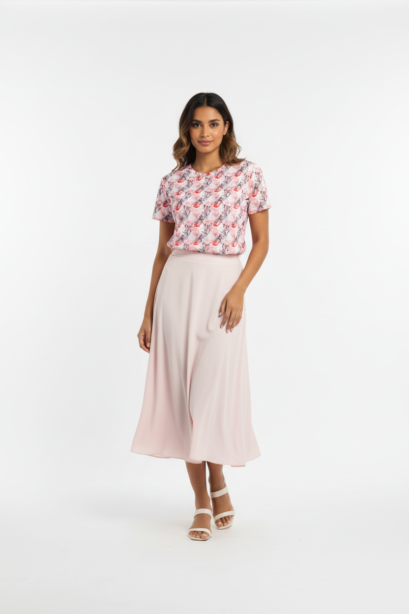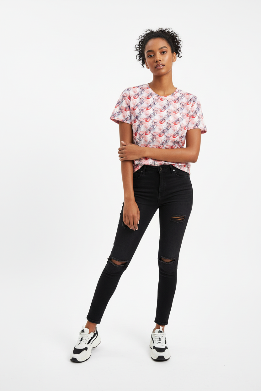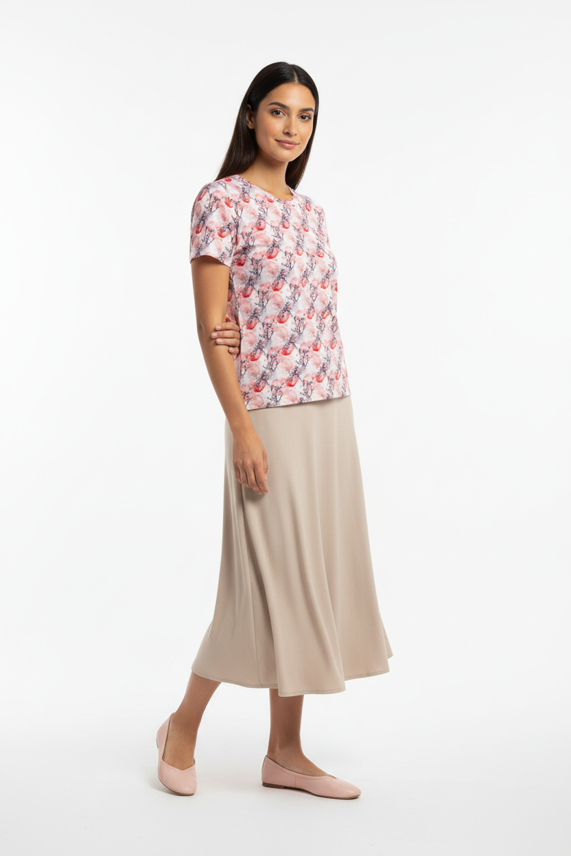 The Cherry Blossom Crew Neck Tee brings delicate Japanese-inspired artistry to your everyday wardrobe. Featuring a soft watercolor pattern of pink cherry blossoms and red moons, this premium tee combines feminine elegance with comfortable, stretchy fabric that moves with you throughout your day.