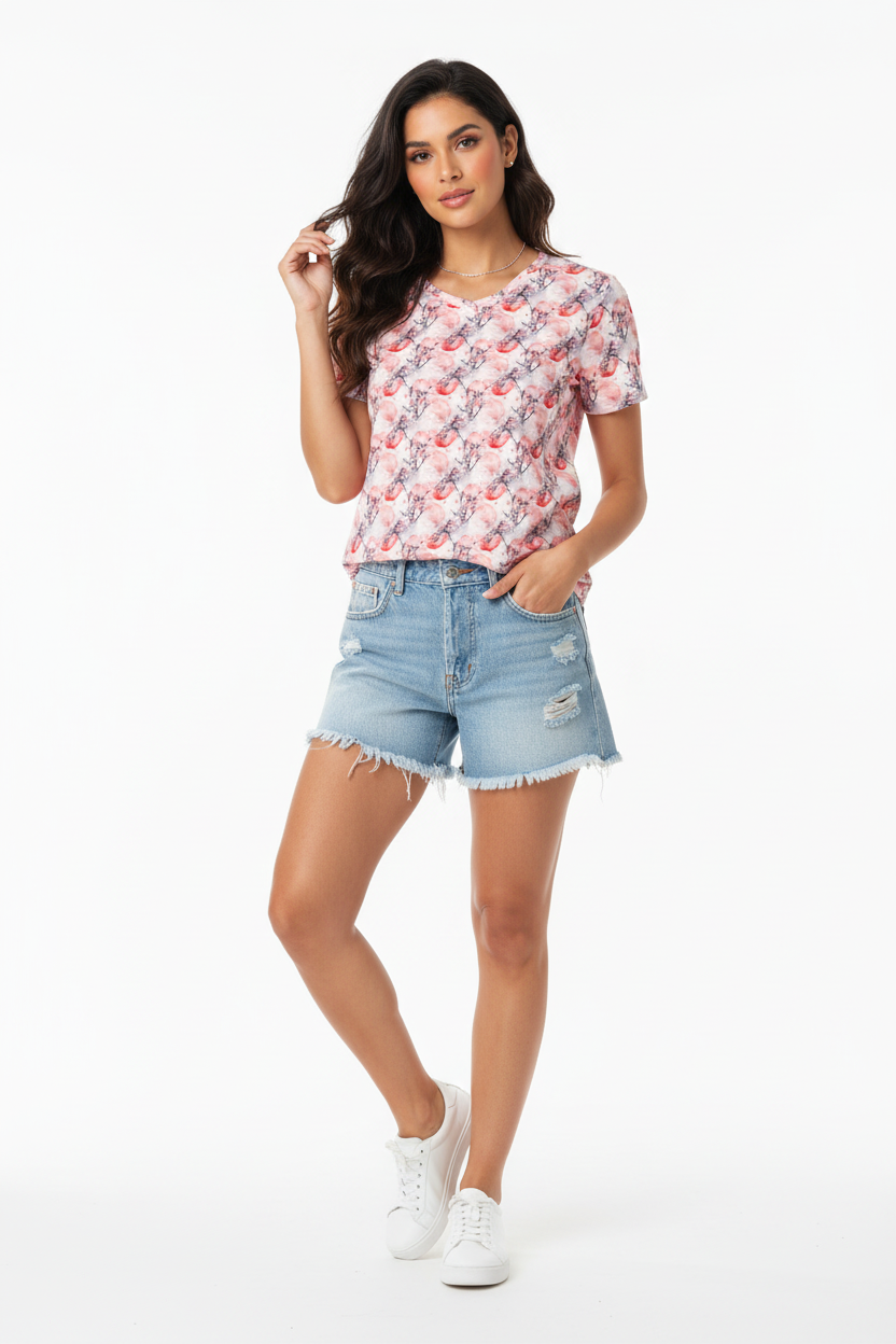 The delicate cherry blossom print elevates this beyond a basic tee, making it perfect for pairing with jeans, skirts, joggers, or shorts. Whether you're running errands, meeting friends for coffee, or enjoying a casual weekend, this graphic tee adds a touch of artistic beauty to any outfit.