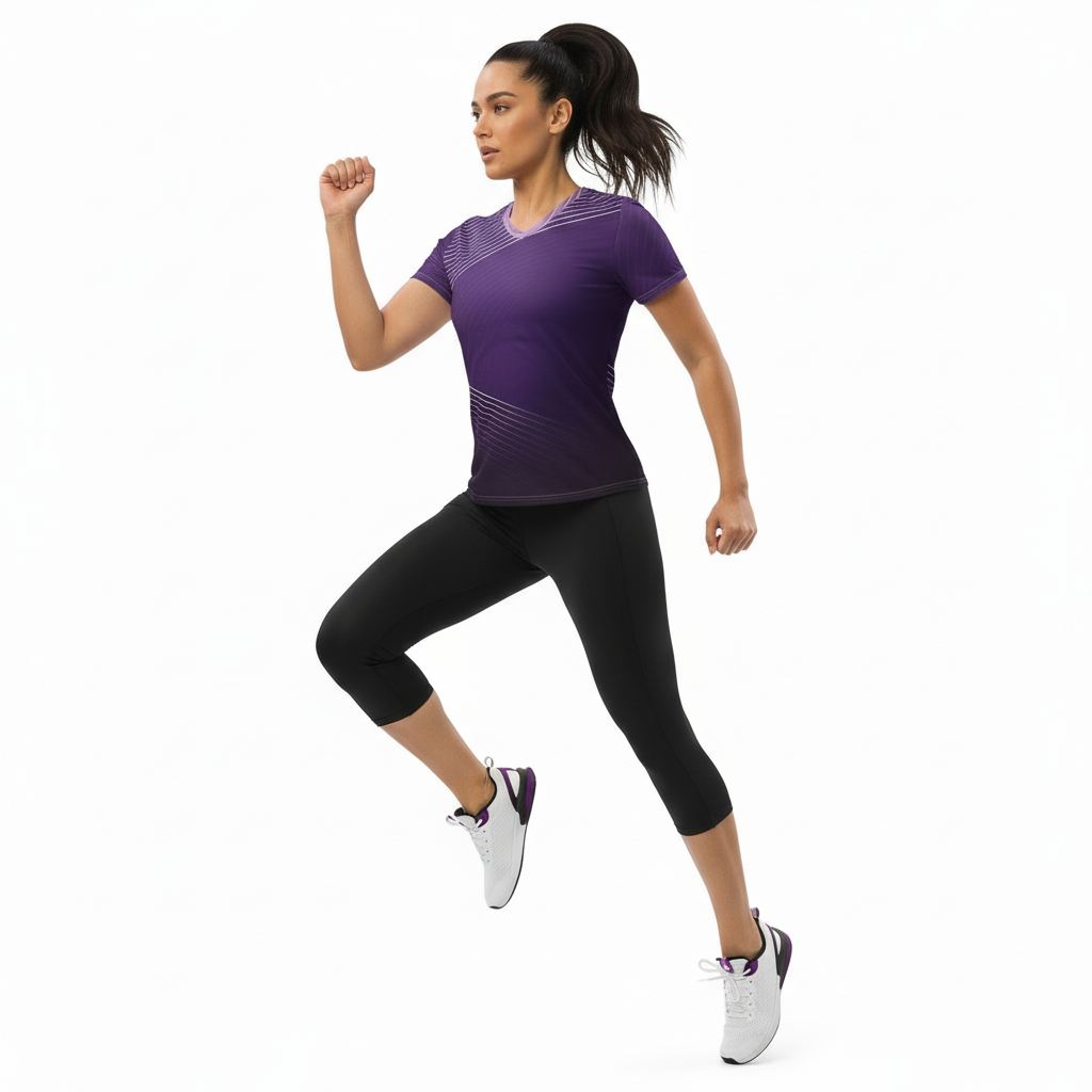 This versatile athletic tee transitions seamlessly from your workout to your day. Pair it with leggings for yoga or running, match with an athletic skirt for tennis, or style with joggers for casual athleisure. The distinctive stripe pattern adds visual interest while the performance fabric keeps you comfortable through any activity.
